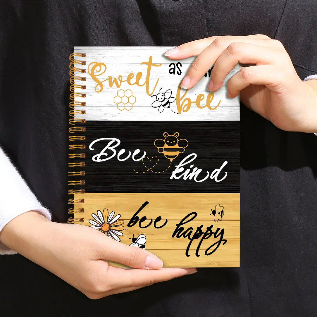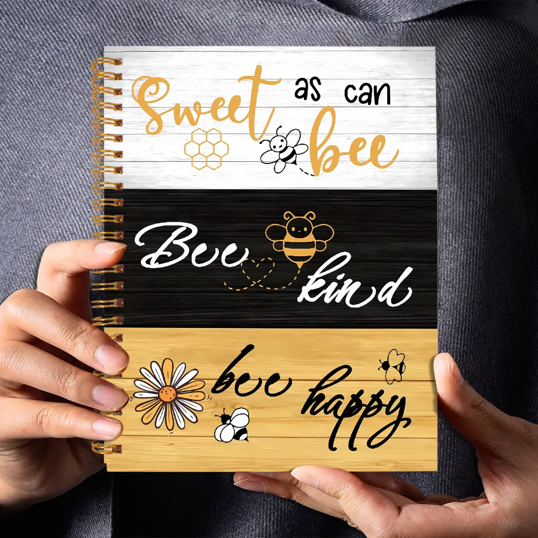 1pc5.5x8.3in Board Background with Three-color Font SWEET BEE Notebook Perfect Gifts Writing Notebook Diary NoteBook Bible Verse Office Stationery Birthday Christmas Gift 5.5x8.3in with 50 Pages