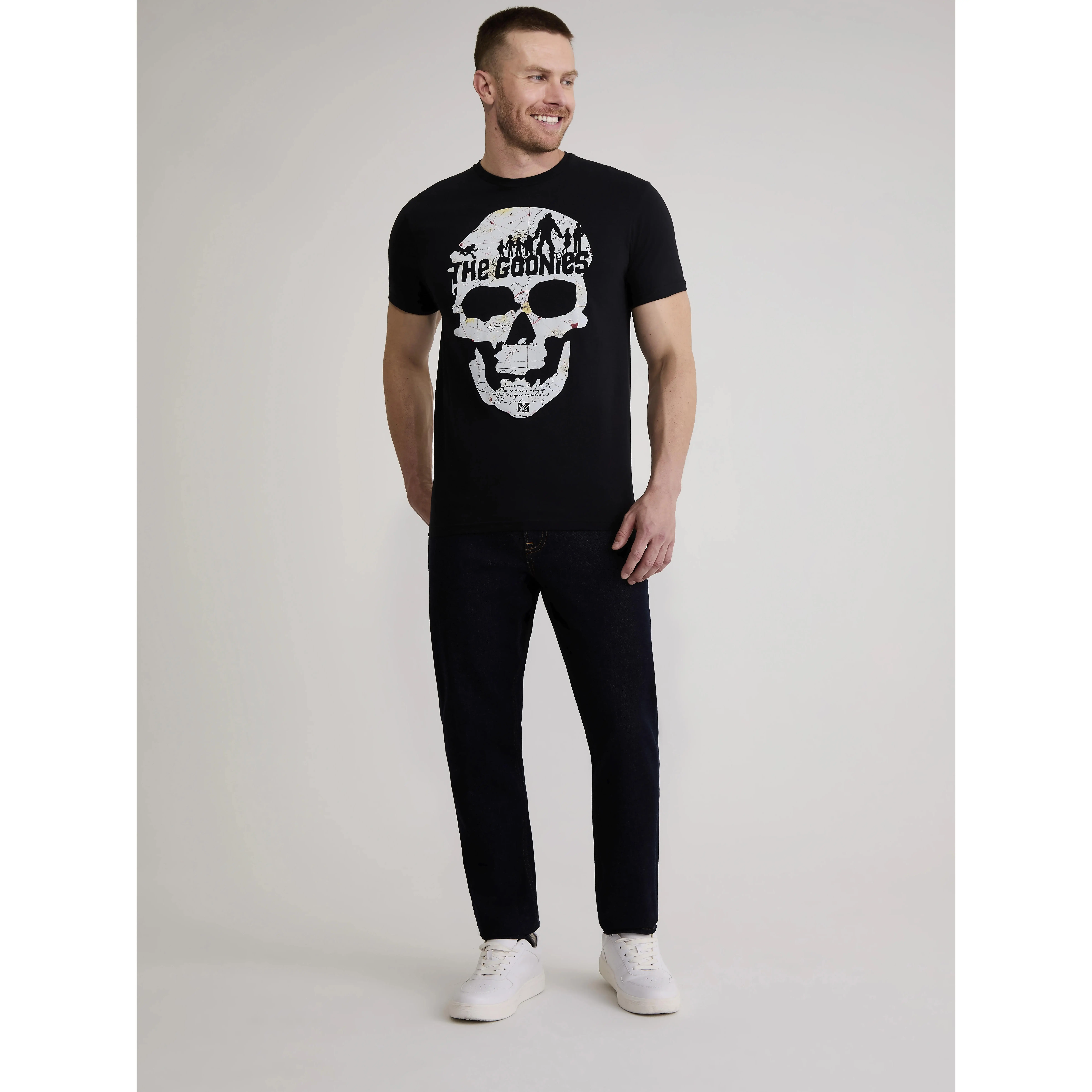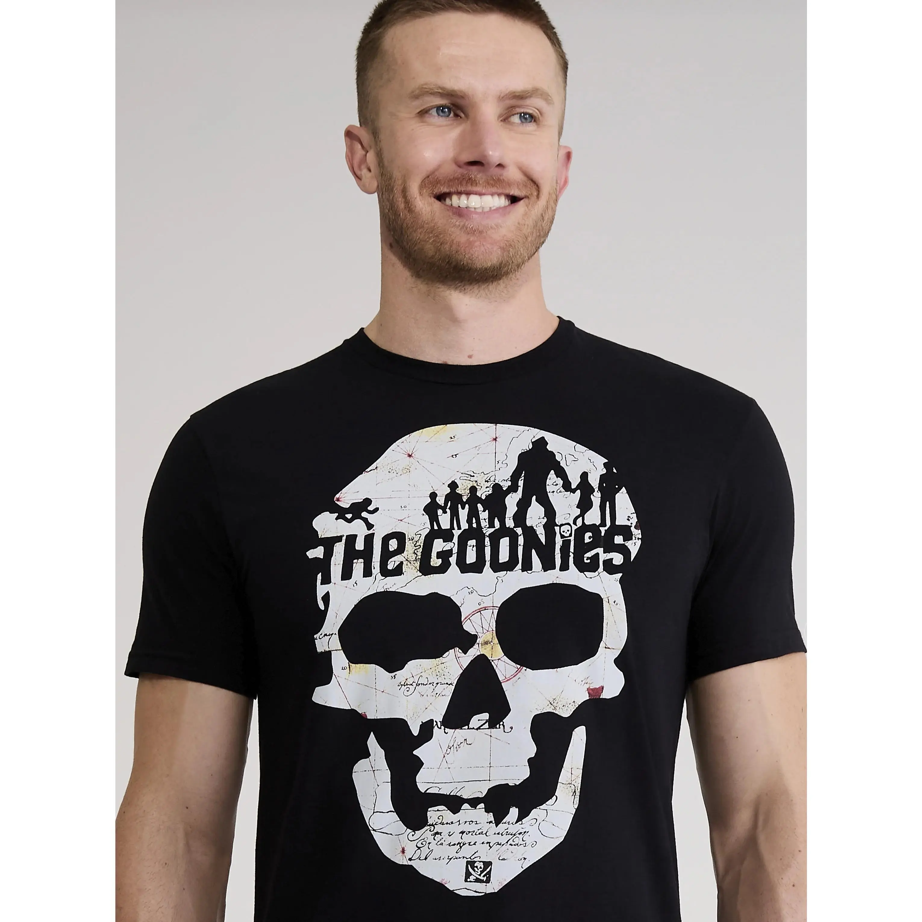 This men's T-shirt features the iconic skull map from The Goonies, a must-have for fans of the classic adventure film. The black shirt showcases the legendary map that led the Goonies on their treasure hunt, evoking a sense of nostalgia and excitement. Made from soft, durable fabric, it ensures comfort throughout the day. Available in sizes S-3XL, this T-shirt is perfect for those who want to represent the adventurous spirit of The Goonies in style.