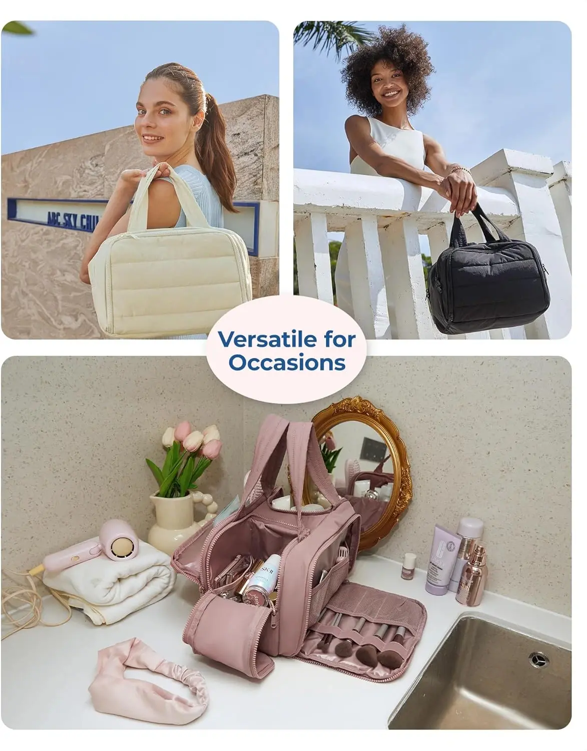 Our soft quilted makeup bag is made for you—blending cozy aesthetic vibes with smart, functional design. It’s the only organizer you’ll need for daily touch-ups, weekend getaways, or long-haul trips.