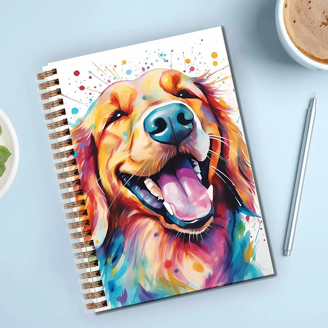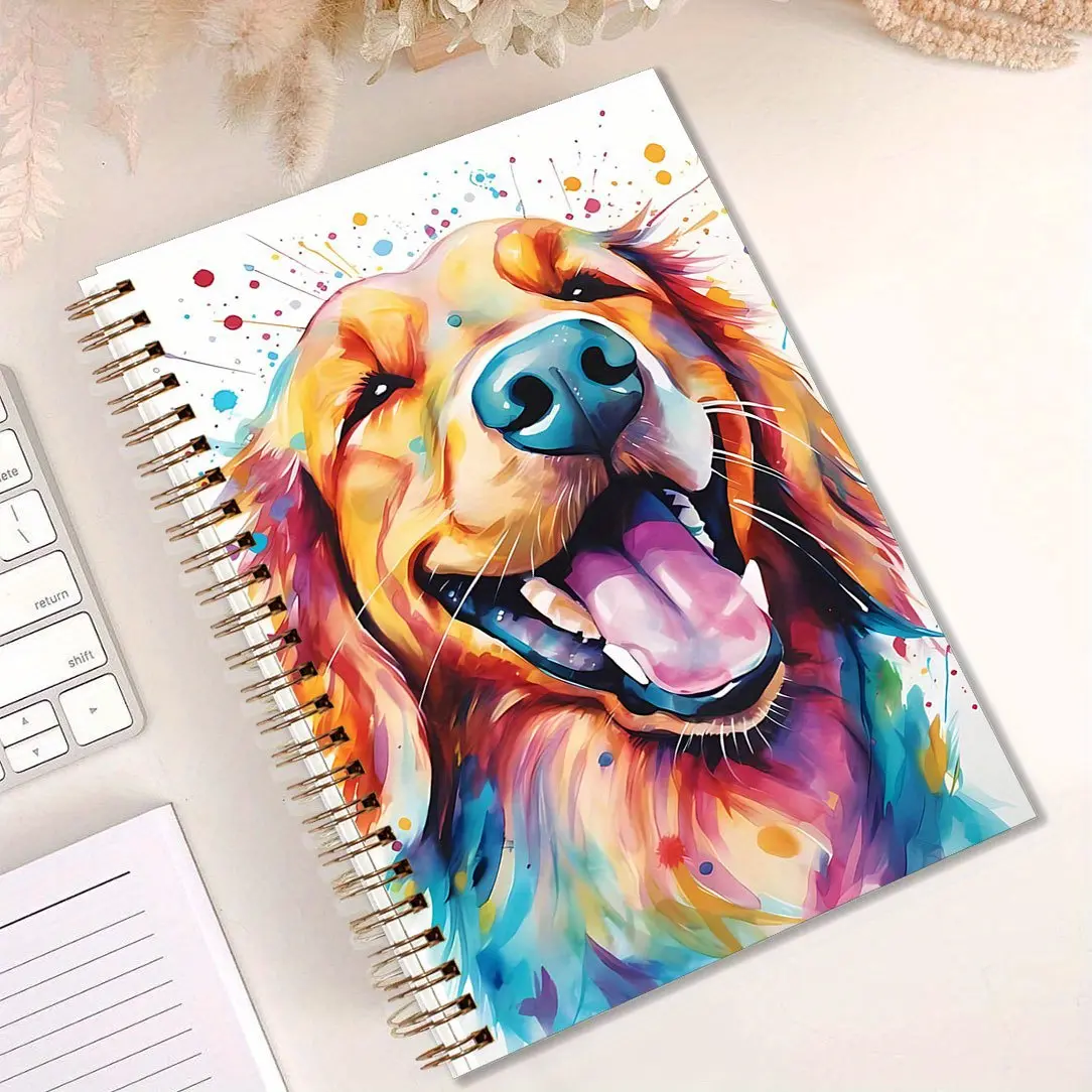1pc Watercolor Cute Animal Golden Retriever Notebook Perfect Gifts for Friends Writing Notebook Diary NoteBook Office Stationery School Supplies Birthday Christmas Gift 5.5x8.3in with 50 Pages