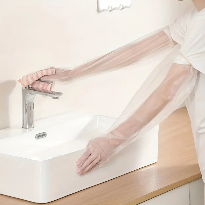 20-Pack Extra Long Cleaning Gloves: Waterproof & Non-Slip Disposable Sleeves for Dishwashing, Laundry & Deep Cleaning | Latex-Free & Alcohol-Free