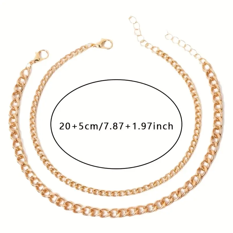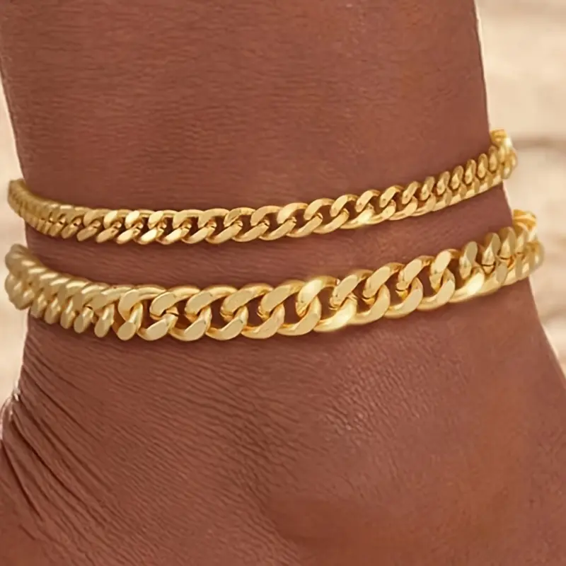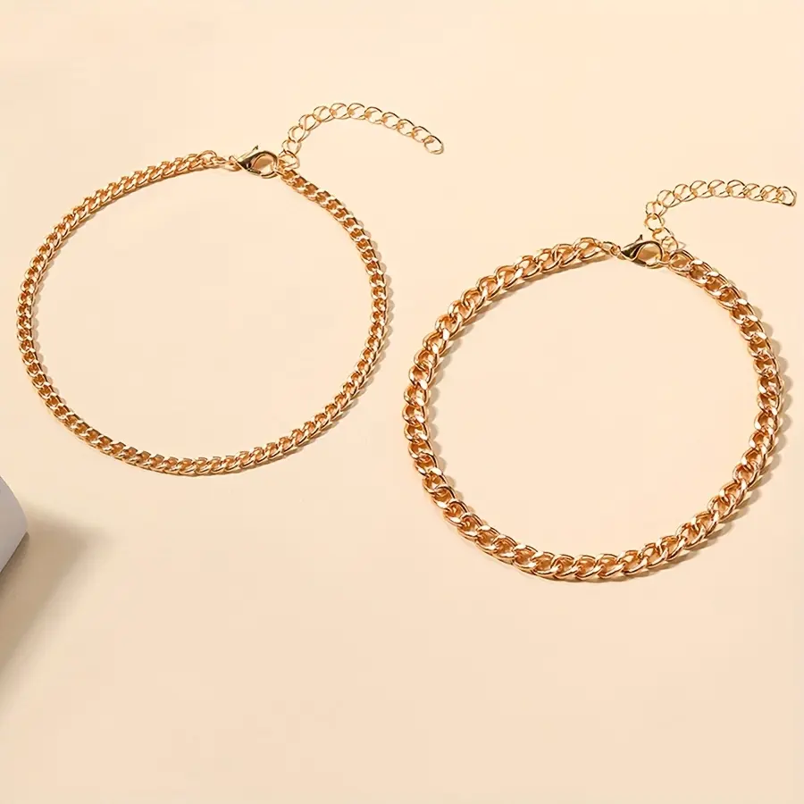 Trendy 2-Pack Minimalist Metal Anklets - Delicate Summer Footwear Accessory, Ideal Holiday & Birthday Gift for Her, Versatile Jewelry for Beach & Parties.