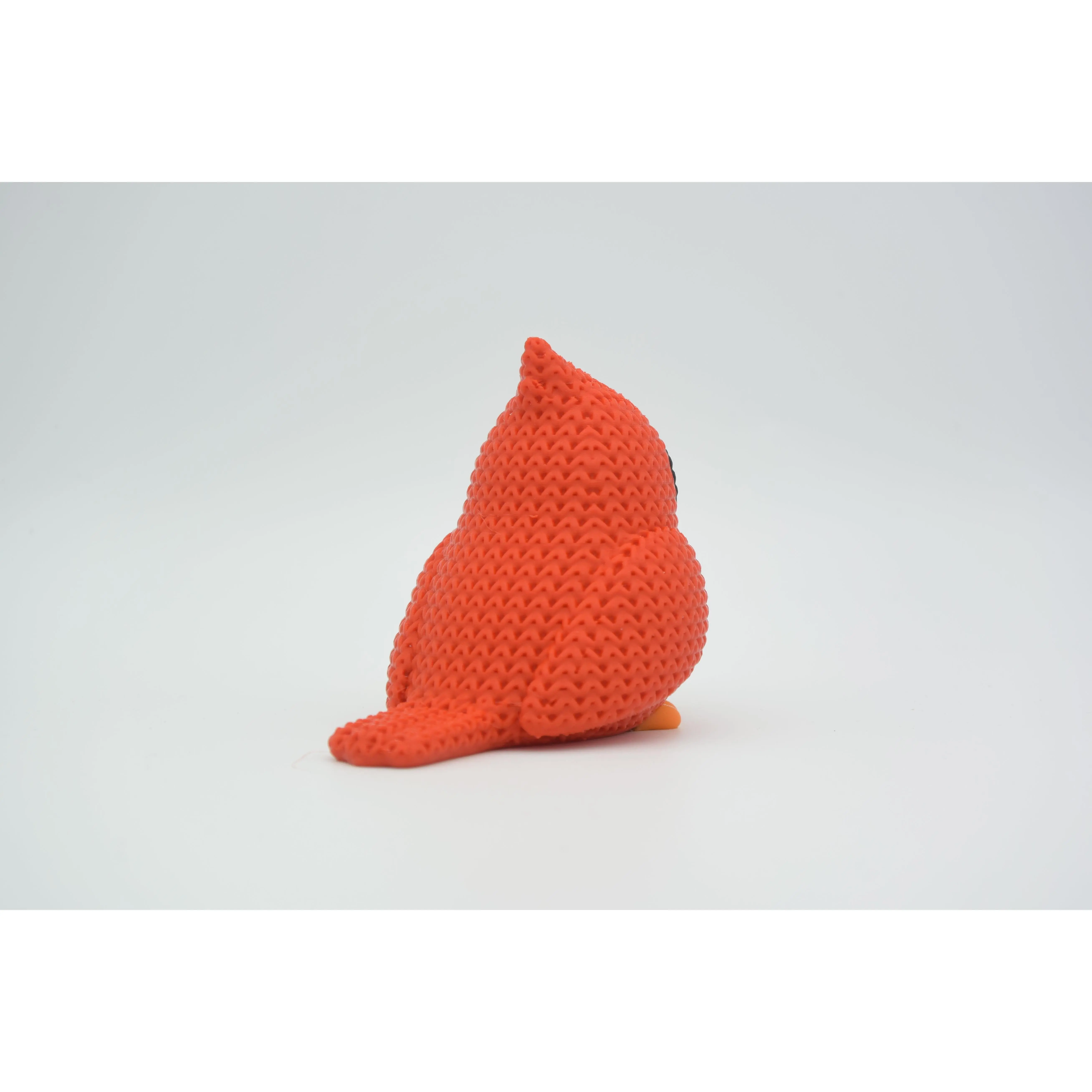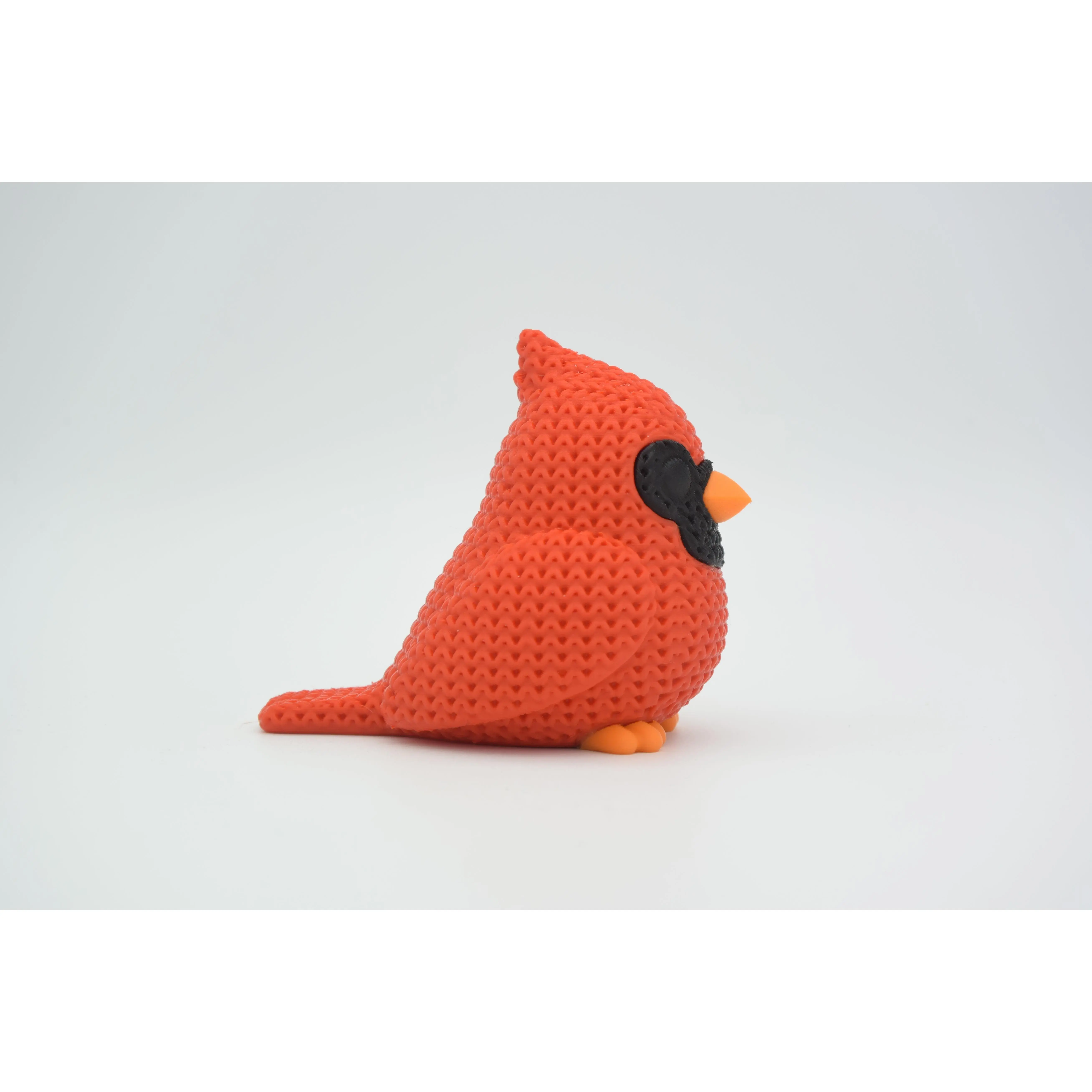 This Knitted Cardinal Bird is a striking 3D-printable model that captures the vibrant beauty of the iconic songbird with a cozy, handcrafted aesthetic. The figure features a bright red body with an intricate yarn-stitch texture, accented by a distinct black mask around its face and a sturdy orange beak. Its rounded, friend-shaped design and charming upright pose make it a perfect decorative piece for nature enthusiasts or a heartwarming gift for any occasion. The detailed "knitted" surface adds a soft, tactile quality that brings a touch of rustic warmth to a desk, shelf, or mantel display.