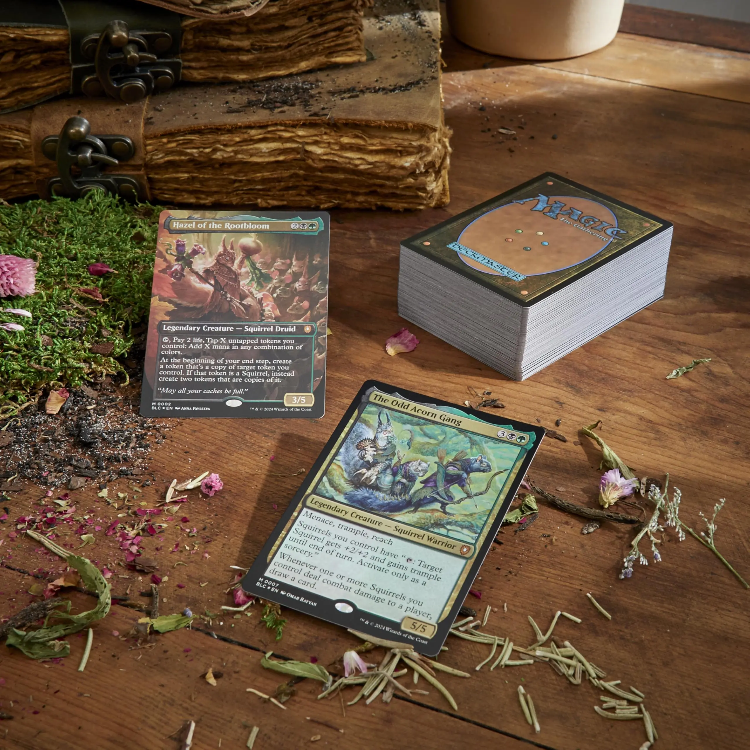 ·TINY TAILS, BIG ADVENTURE—Put your best paw forward and enter the world of Bloomburrow. Battle your friends with armies of adorable critters and prove that bravery comes in all sizes.