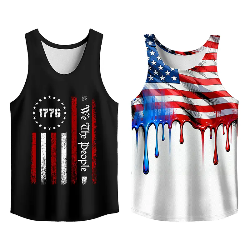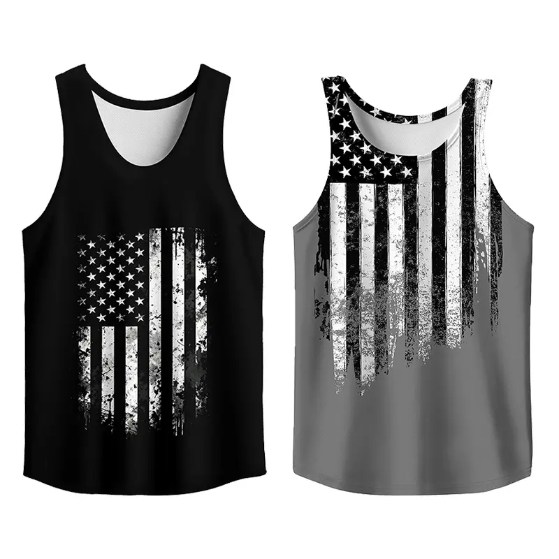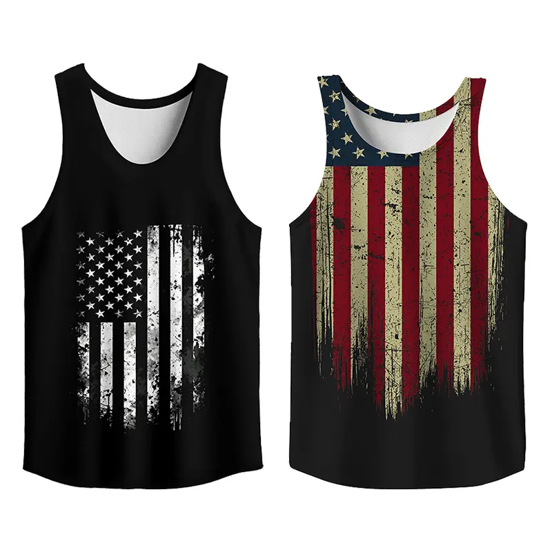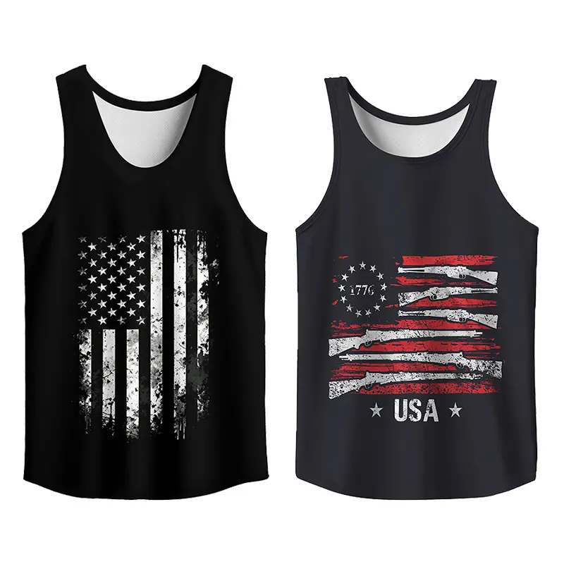Y2K 2 Pack USA Flag Graphic Tees, Menswear Tank Top Slim Fit Apparel, Big and Tall Gym Workout Running Tee, Comfy Casual Sleeveless