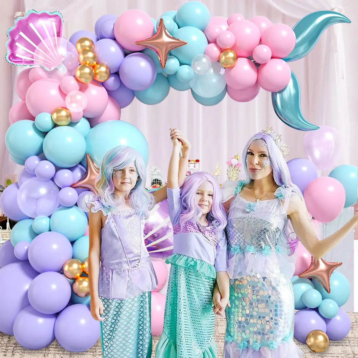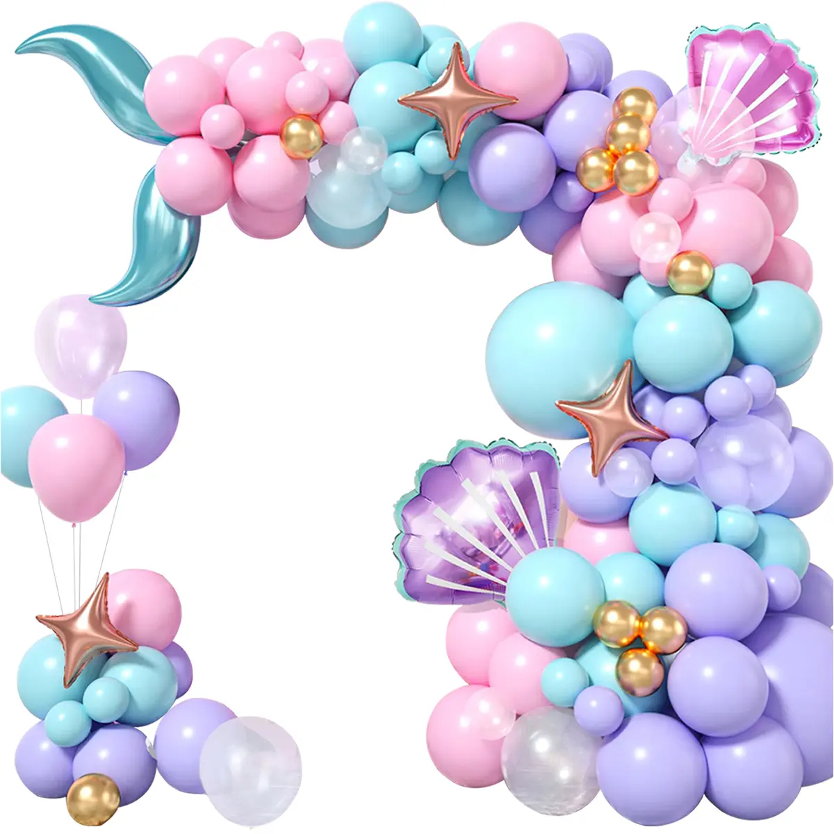 This 96pcs Mermaid Tail Star Balloon Decoration Set is ideal for gender reveal, weddings, and girl's birthday parties. It features an ocean theme, creating a magical under-the-sea ambiance. The set includes a balloon garland kit, perfect for enhancing any event. Transform your space into a whimsical underwater world with this enchanting decoration.