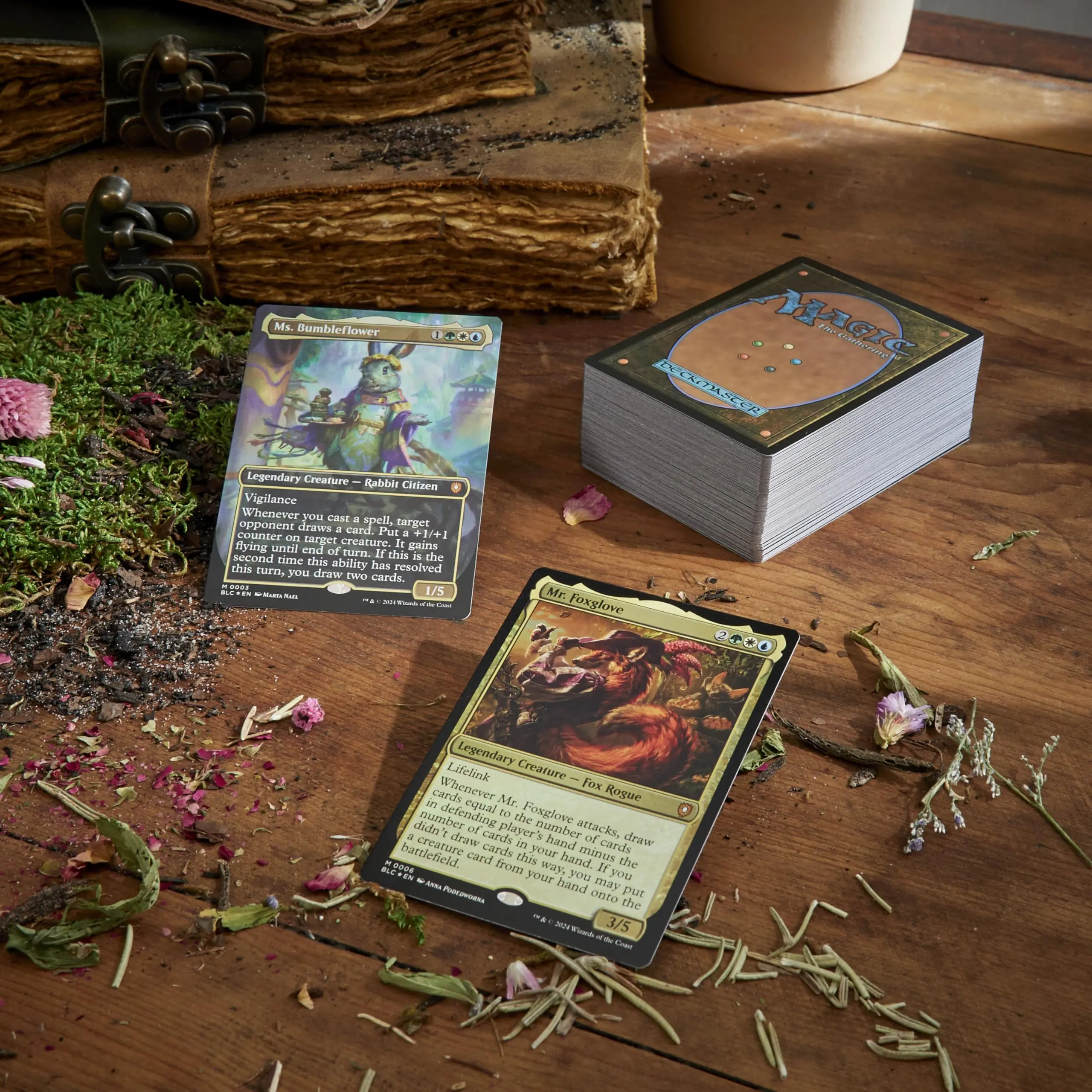 ·CONTENTS—1 ready-to-play Peace Offering Bloomburrow Commander Deck, a 2-card Collector Booster Sample Pack, 10 double-sided tokens, and 1 deck box