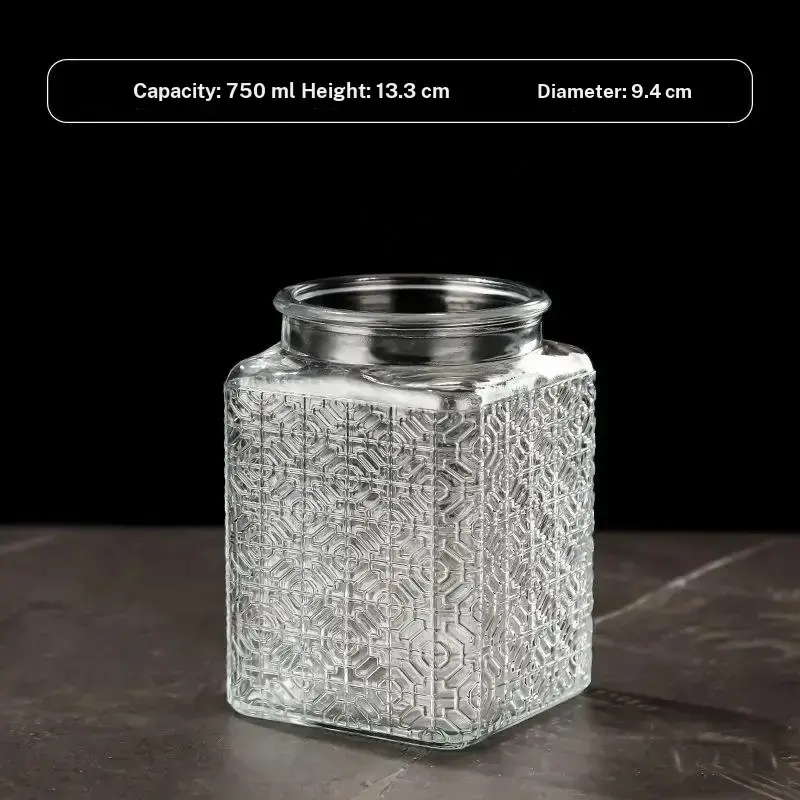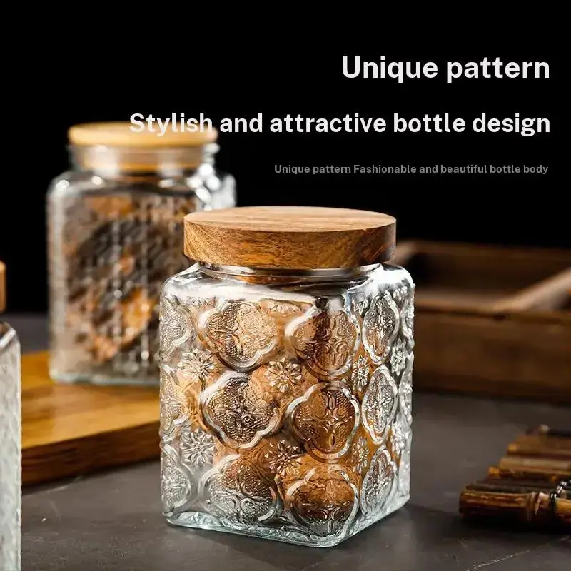 Vintage Begonia Pattern Kitchen Storage Jar, Embossed Glass Sealed Jar, Household Snack and Spice Storage, Wholesale Available