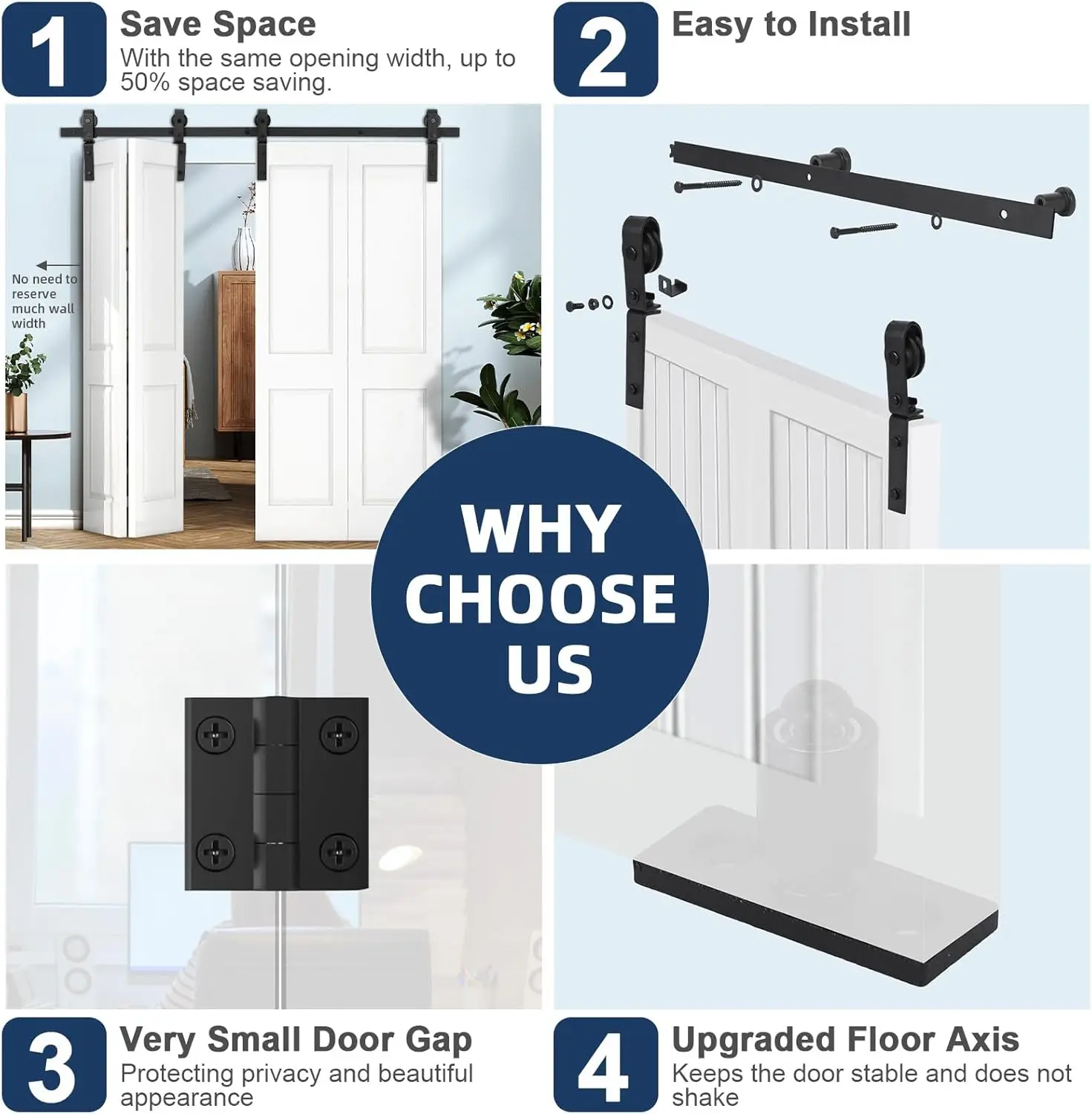 ·Functional and Stylish: With minimal gaps, these bi-fold barn doors track kit enhances privacy while adding a touch of elegance to any room, making them ideal for kitchens, living rooms, laundry areas, closets, and more