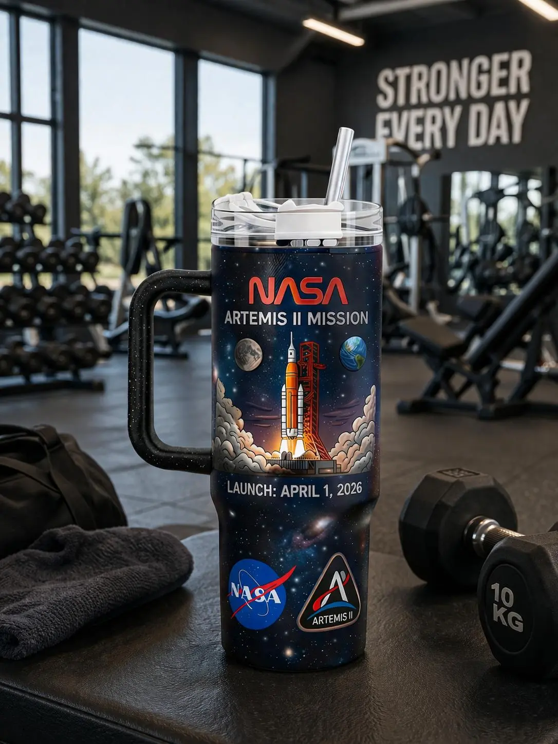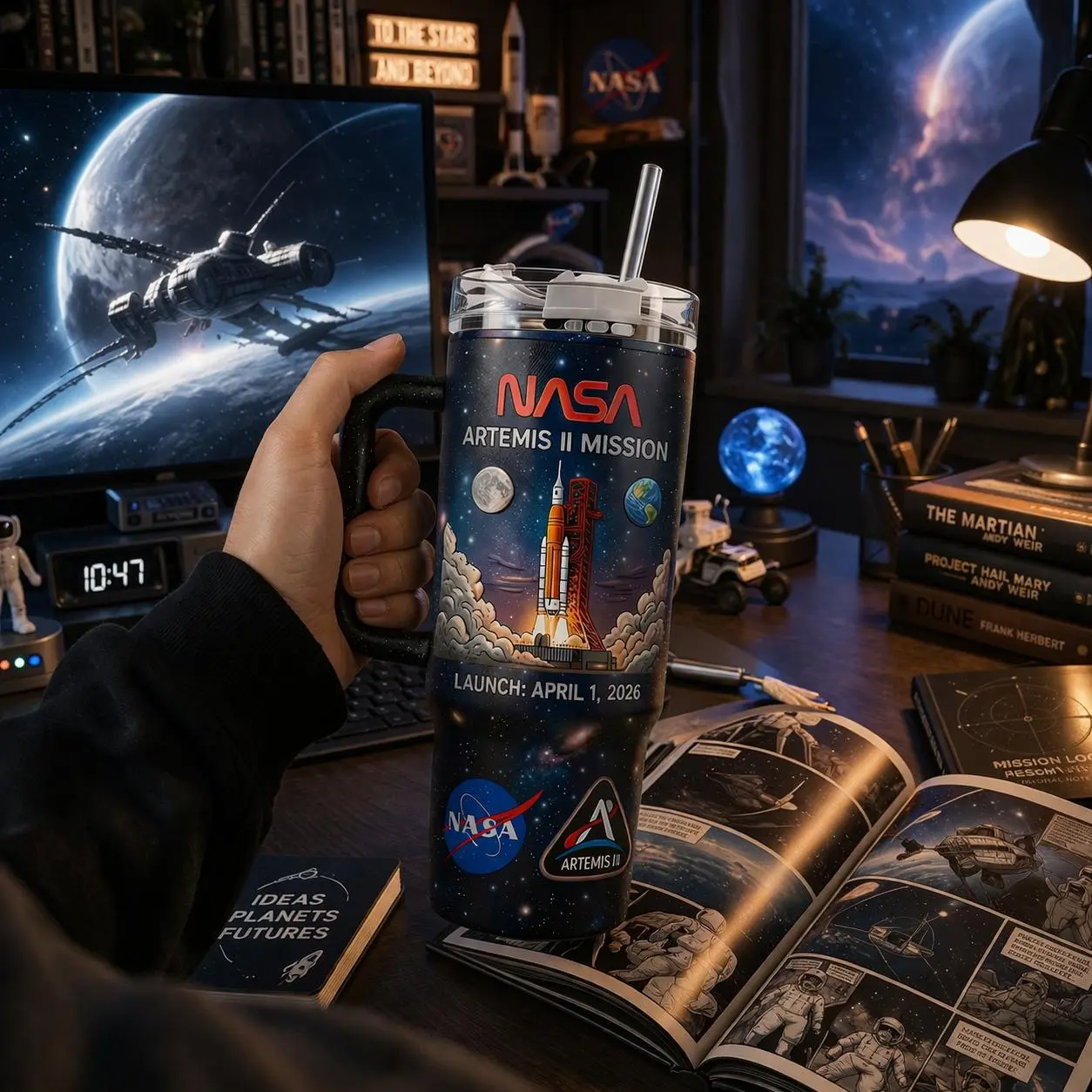 NASA Artemis II Mission Tumbler 40oz – Space Enthusiasts, NASA Fans, and Adventurers – Perfect Gift for Space Lovers – Rocket Launch Design with NASA and Artemis II Logos – Open for Sale!