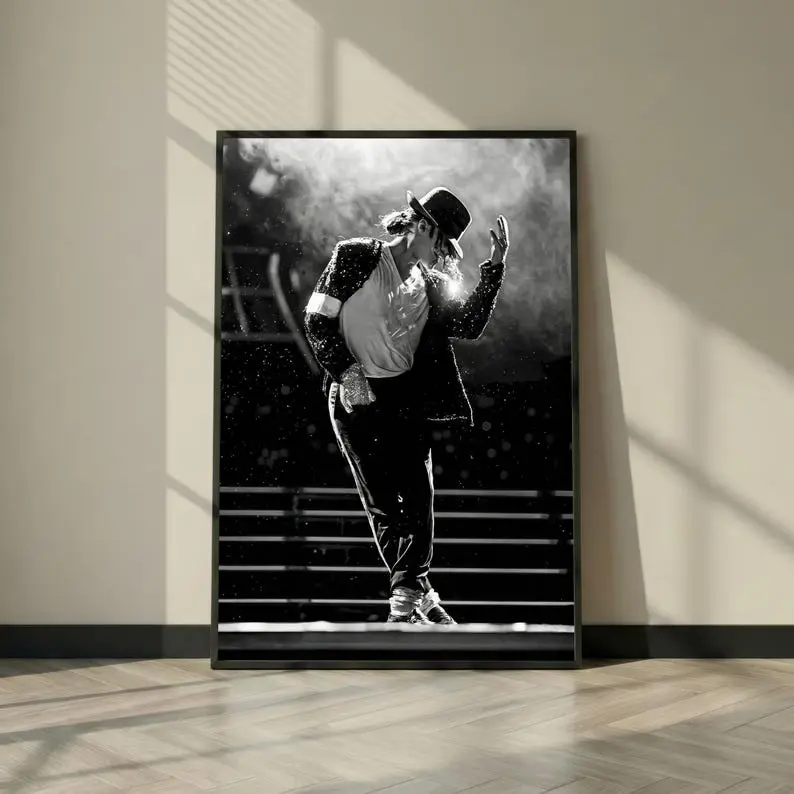 Michael Jackson Style Dance Poster Print, Black and White Music Legend Wall Art, Pop Icon Stage Performance Modern Wall Decor