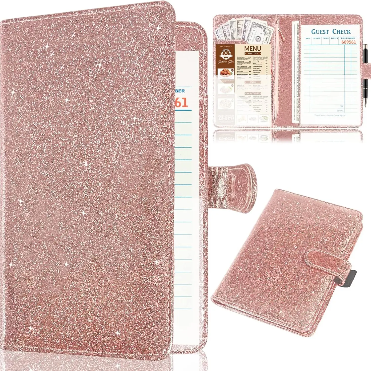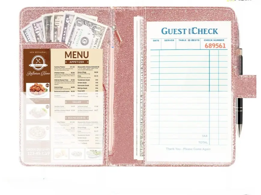 ·High-Quality Materials: Made from premium PU leather with a sparkling finish and protective coating, this waitress book is durable, wear-resistant, and built for daily use. The waterproof surface makes cleaning quick and easy—just wipe with a cloth.