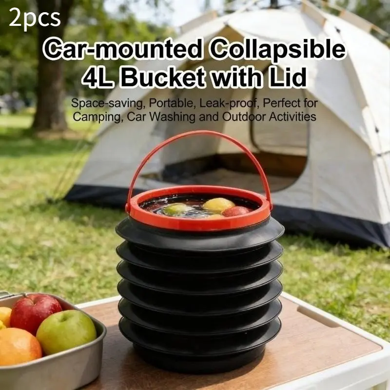 2-Pack 4L Collapsible Car Bucket with Lid, Multifunctional Foldable Trash Can & Storage Bin for Car, SUV, Truck, Camping, Travel, Portable Leakproof Automotive Interior Organizer