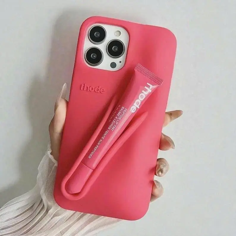 Silicone Phone Case with Lip Gloss Holder Back Stick on Holder for IPhone 17/16/15/14/13 Pro Max Plus 17 Air
