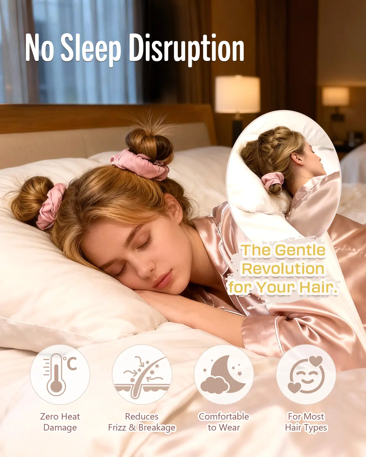 Wake Up to Heatless Curls Overnight (Bouncy Curls): Start with slightly damp or oiled hair. For lasting curls, the key is a tight wrap! Coil your hair snugly around the rod before bed. For best, long-lasting results, leave it in for the full 6-8 hours. Sleep comfortably while the curls set,then unwrap in the morning for beautiful, bouncy curls with zero heat damage.