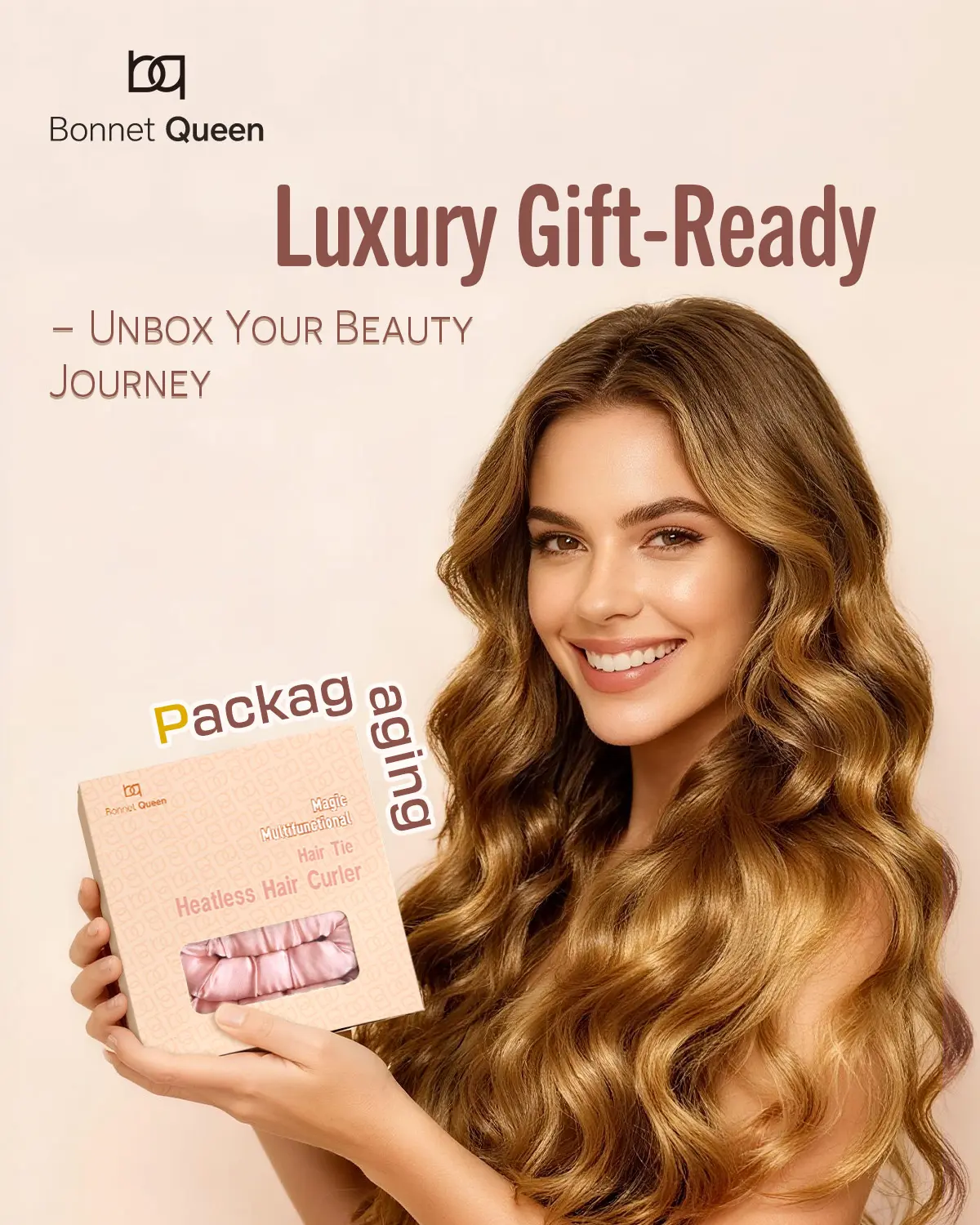 BONNET QUEEN Heatless Hair Curler Set (2Pcs), Heatless Curls Overnight with Satin Hair Rollers, All-in-One Curling Rod for Hair Curlers to Sleep In, Cream Pink(For Bouncy Curls)
