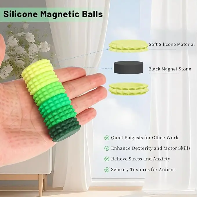 STRESS RELIEF & FOCUS BOOSTER: Silicone magnetic balls fidget toys through grasping, pushing, and flipping, quietly manage anxiety, boredom, or ADHD tendencies. Perfect autism sensory products for staying focused during work, meetings, studying, or travel without disturbing others