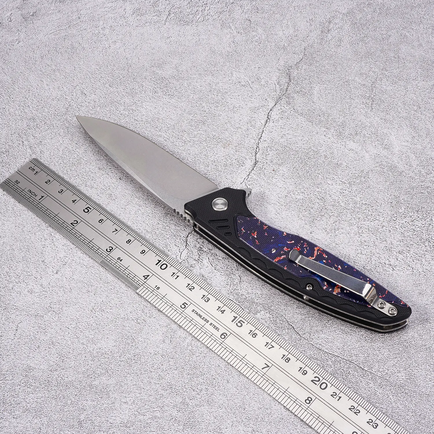 EDC multifunctional starry sky tactical outdoor folding knife with a G10 ergonomic handle; convenient pocket/belt clip for easy carry; outdoor cutting tool designed specifically for climbing and fishing; an essential item for camping and hiking.