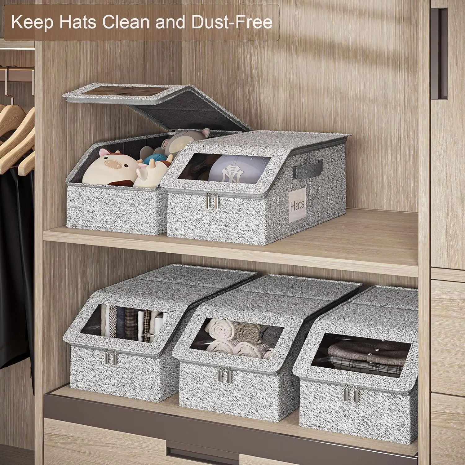Features a stackable structure to save valuable space. Each hat storage bin is equipped with a sturdy bottom plate for enhanced stability, preventing tilting and sliding while stacked.