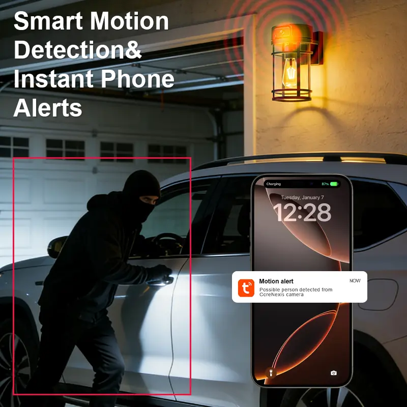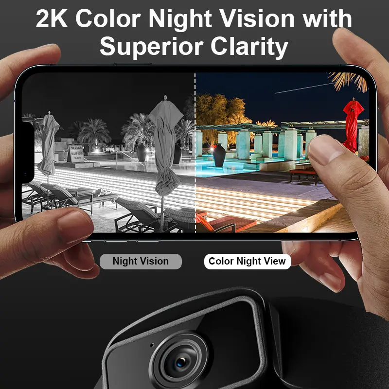 ·【2K HD & Color Night Vision】: Avoiding the harsh glare and internal reflections caused by light source proximity in bulb camera housings.Features a 2K high-definition image sensor with wide dynamic range and a 120° field of view; infrared and full-color night vision ensure clear identification of people, vehicles, and objects—even in total darkness or uneven lighting conditions.