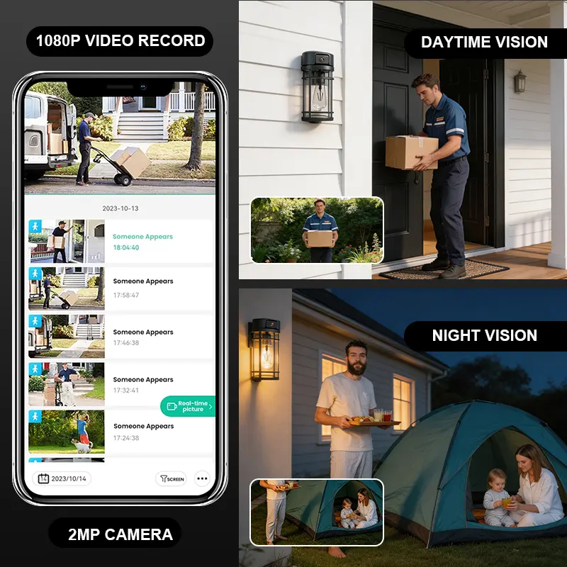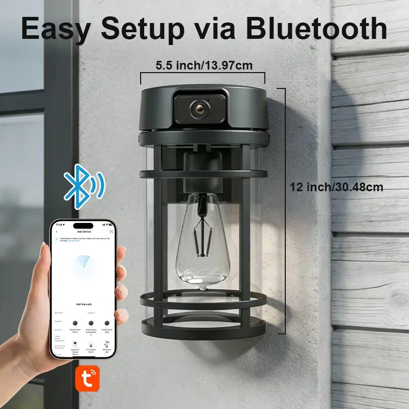 ·【2-in-1 Wall Lantern Camera】: Combines a decorative 10-inch outdoor wall lantern with a professional-grade security camera; crafted from anti-rust steel and tempered glass; matte black finish complements modern architecture while delivering covert yet functional home protection.