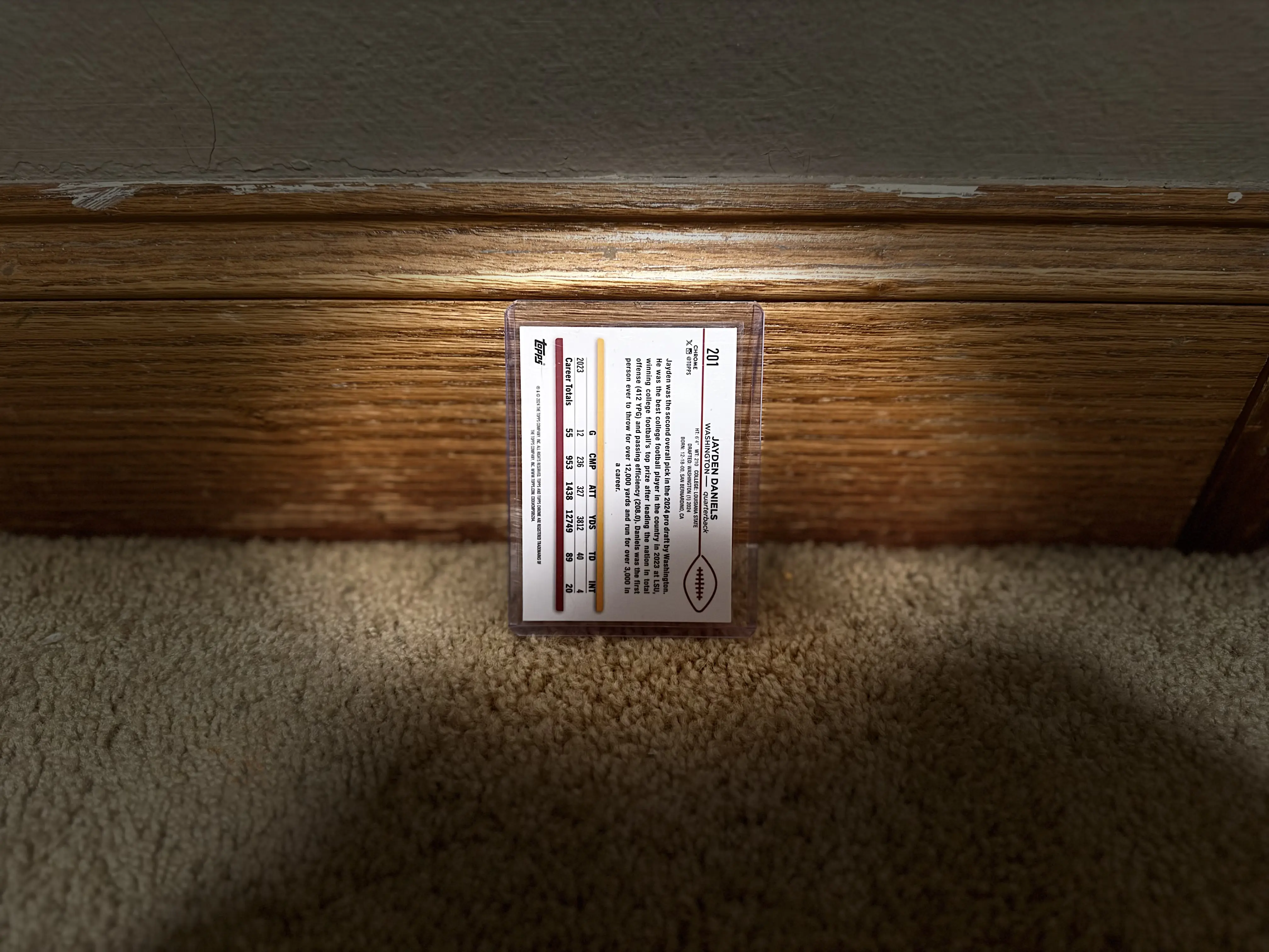 Single Card of Jayden Daniels Topps chrome rookie card in fantastic condition comes with sleeve