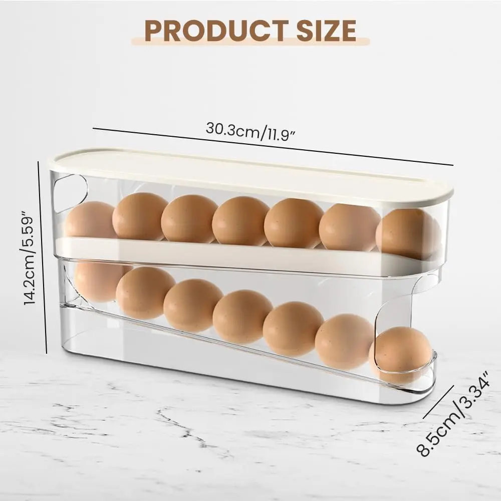 ·Convenient Rolling Egg Dispenser: With an automatic sliding track, eggs roll forward smoothly for easy access. No need to constantly lift the cover-grab your eggs effortlessly each time.