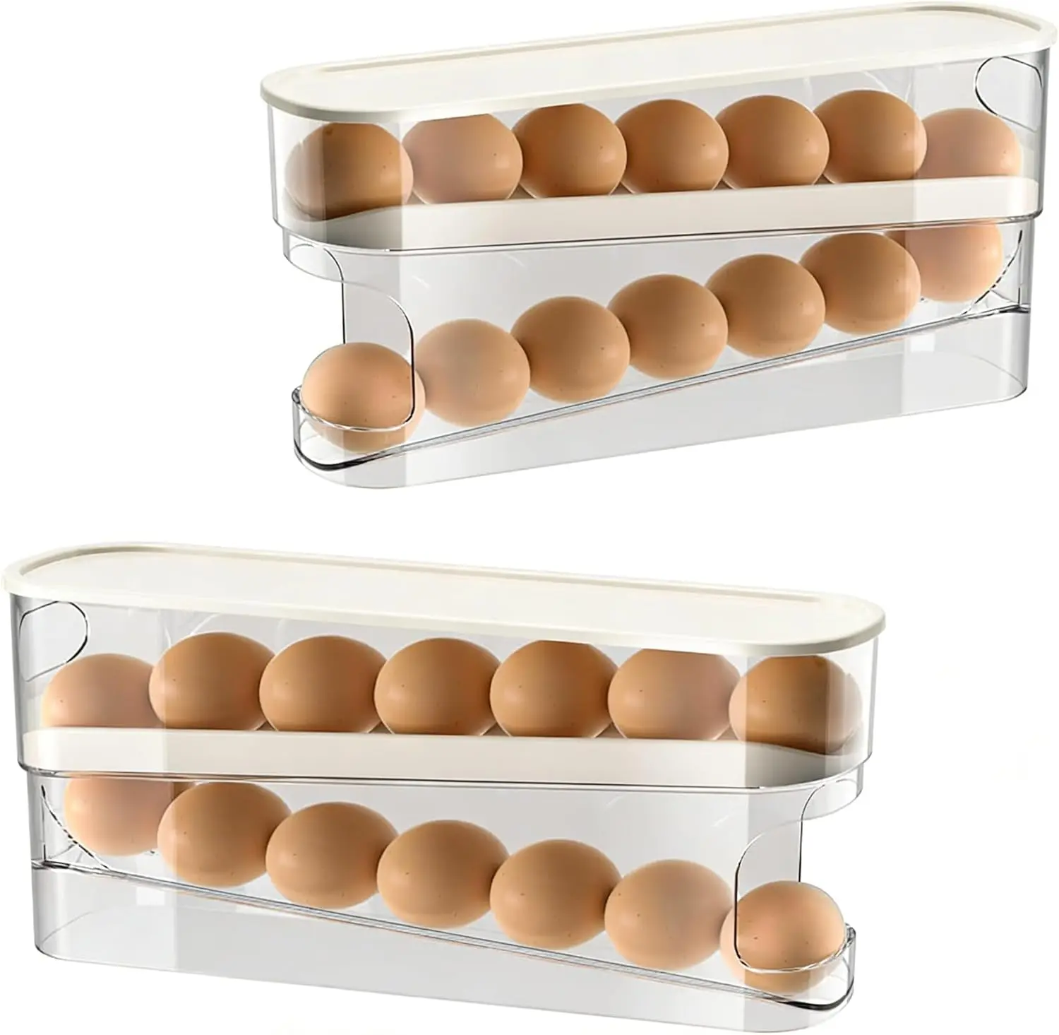 2pcs Auto Rolling Egg Holder for Fridge, Egg Dispenser/Organizer/Storage/Container with Lid for Refrigerator, Sturdy and Durable Space-Saving Egg Tray for 12 Large Eggs
