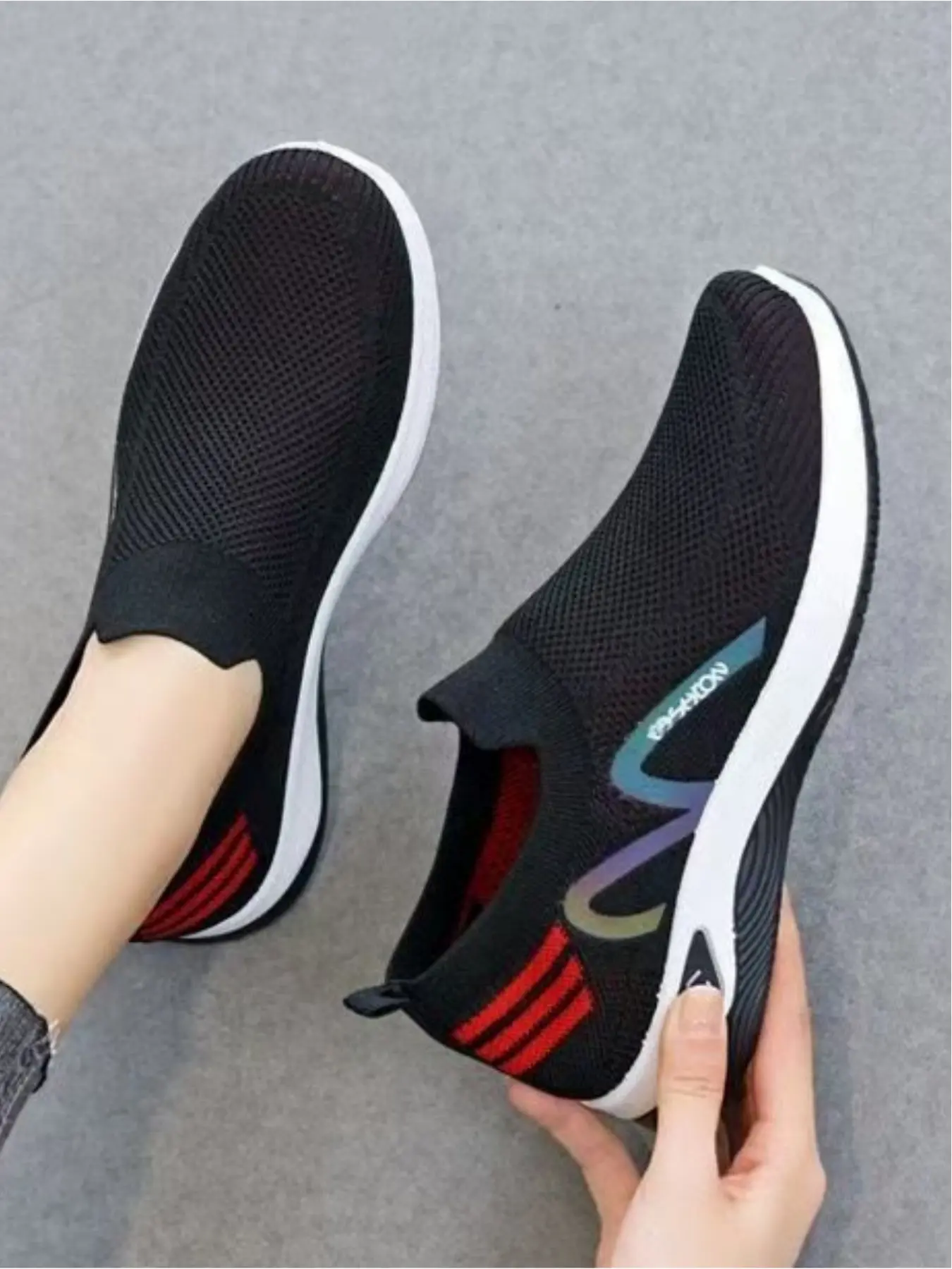 Ladies' casual sports shoes with a woven mesh upper that is breathable and comfortable. The one foot style is easy to put on and take off, suitable for daily commuting, outdoor leisure, running, fitness, hiking and other sports scenes