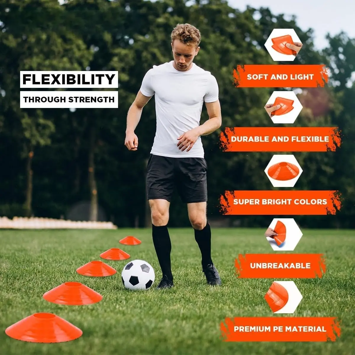 75/50/25 Pack, Pro-Grade Soccer Training Cones Set, Durable Agility Soccer Cones with Carry Bag & Strap Holder Ideal for Sports Training, Football, Soccer, Basketball- Trusted by Coaches & Athletes