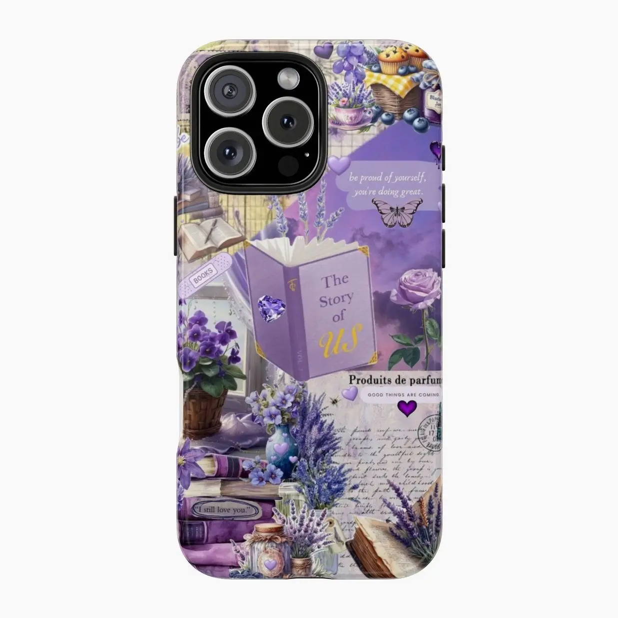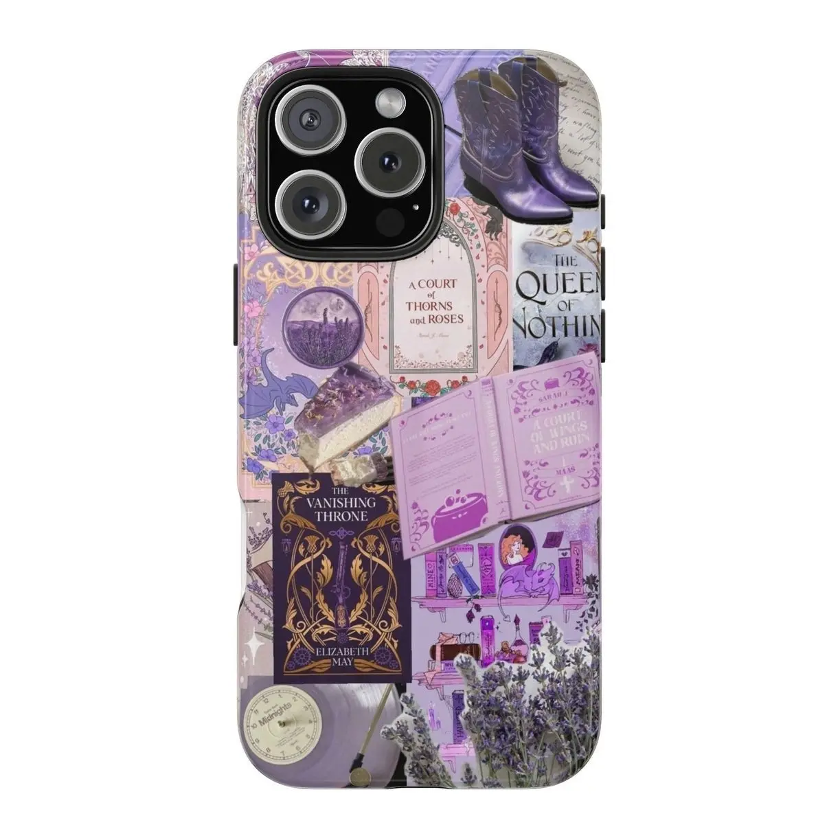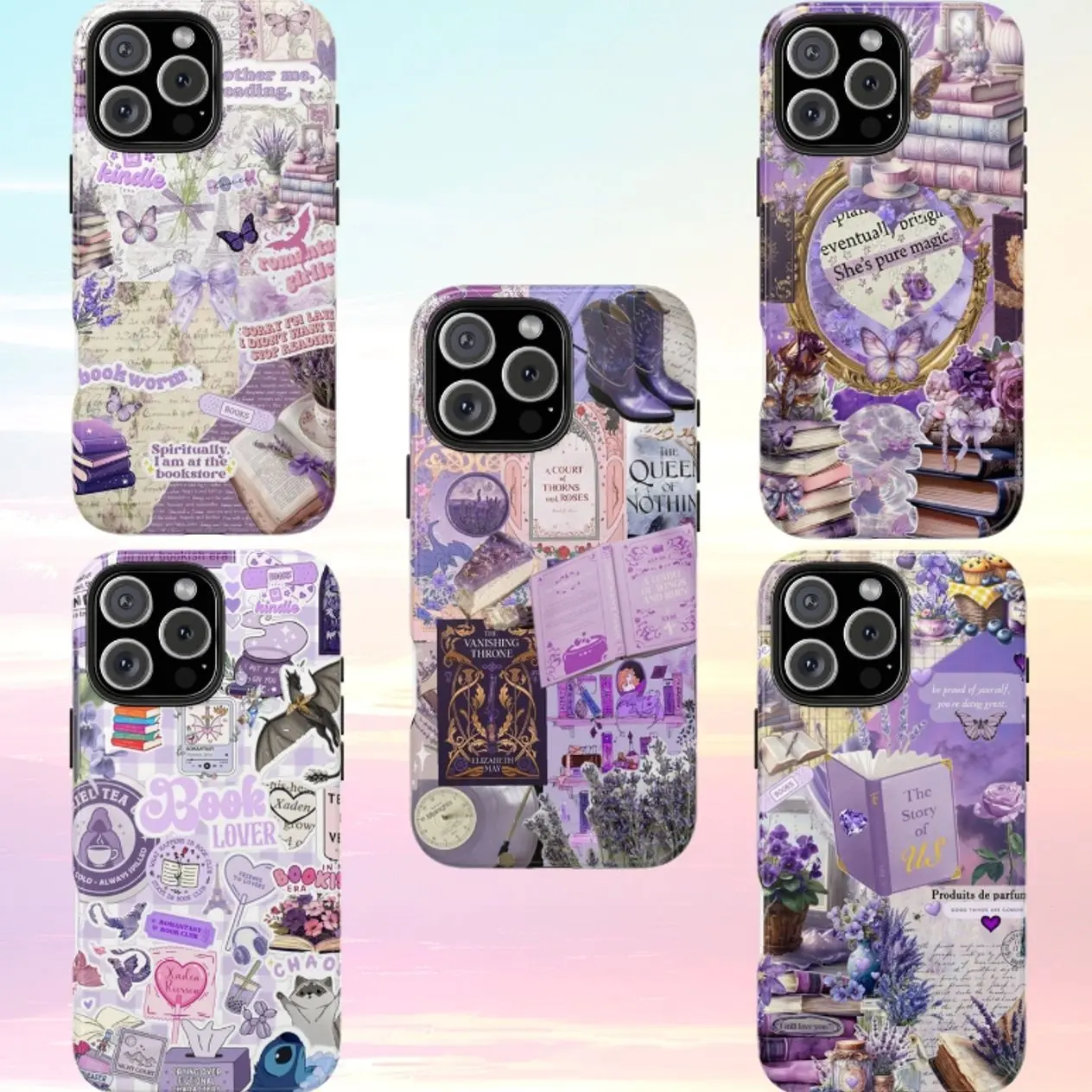 Book Lover Aesthetic Phone Case for iPhone & Samsung – Purple Literary Collage, Coquette Vintage Books, Cute Reader Girl Gift, Fantasy Romance Vibes
