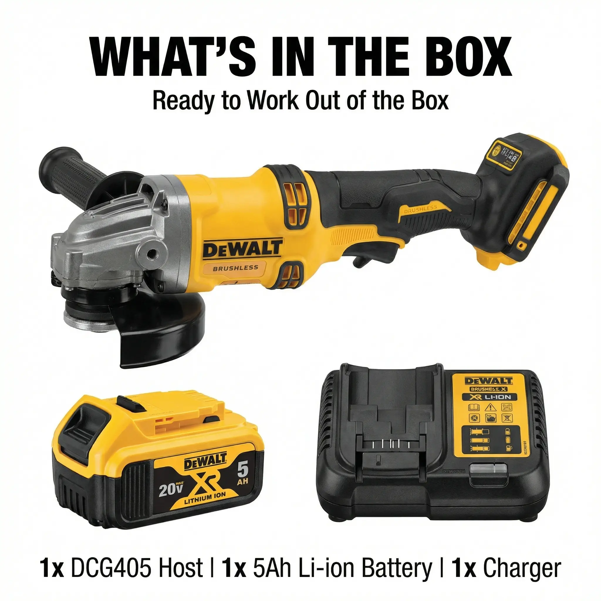 Dewalt DCG405-125 Angle Grinder Kit One Battery Charger Construction Cutting Electric Wrench High Speed