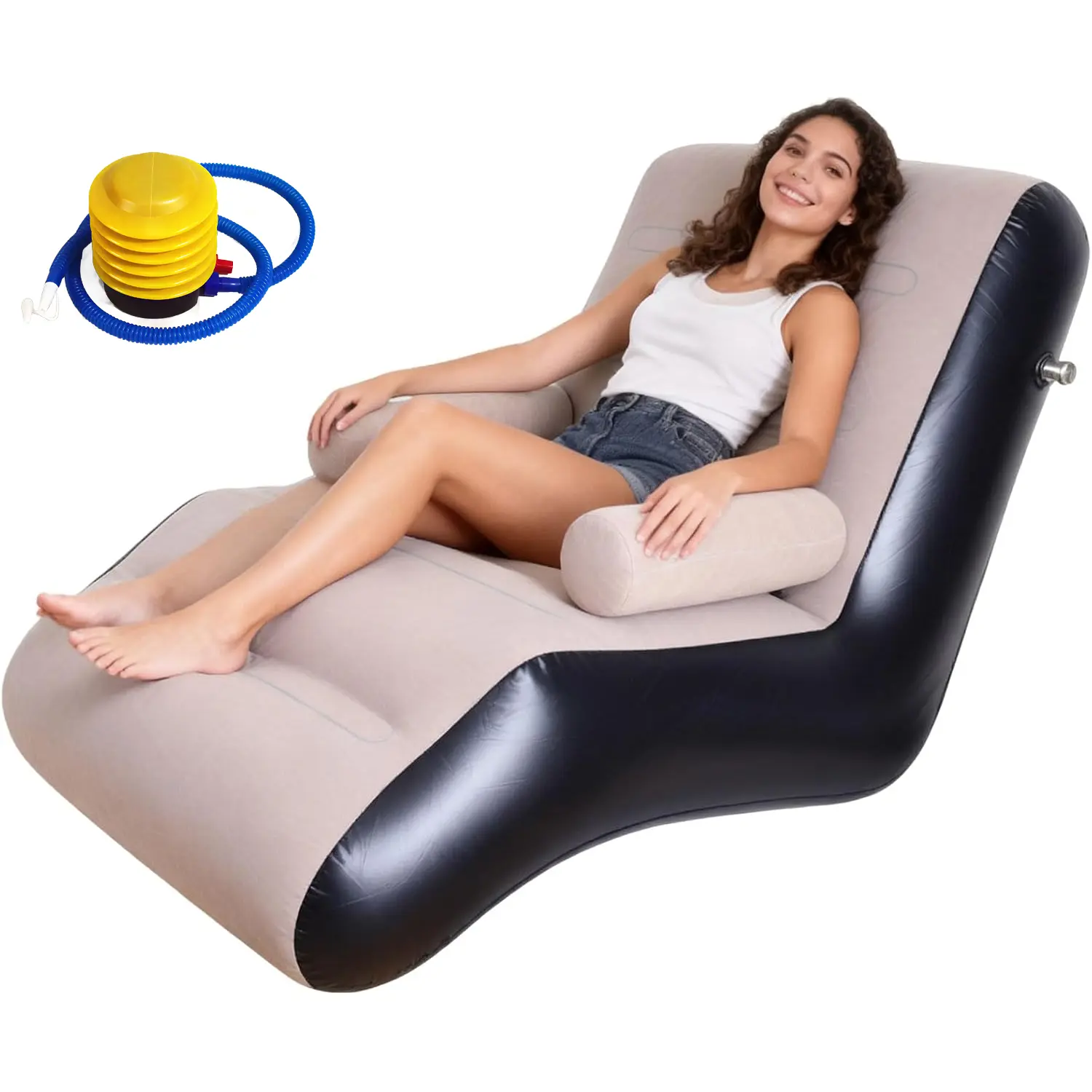 S-Shaped Lounger (with Air Pump) — Portable PVC Sofa Bed, Versatile Indoor/Outdoor Air Cushion Chair; Ideal for Patios, Gardens, Beaches, and Leisure Areas; Modern Backrest Chair & Travel Seat