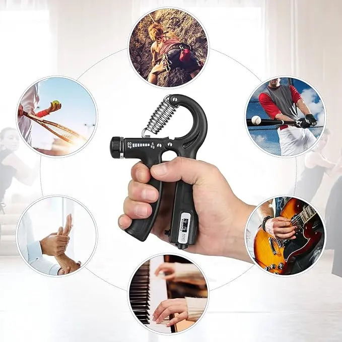 ·ADJUSTABLE HAND GRIP STRENGTHENER with COUNTER - Mechanical counting from 0 to 99, and start a new round. Do not have to count yourself. The integrated counter automatically tracks your repetitions as you squeeze. Never lose count of reps again! Help you focus on exercising. Suitable for all age groups and fits well for all hand sizes. Ideal hand gripper for rock climber, guitarists, drummer, wrestler or softball pitcher.