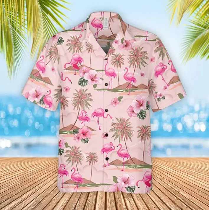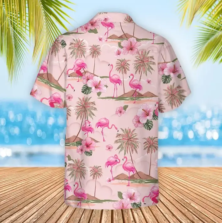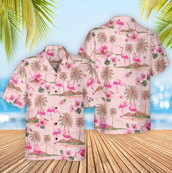 Flamingo Hibiscus Hawaiian Shirt: Tropical Beach Vacation Vibes, Pink Flamingo Button Up Shirt, Club Aloha Unisex Shirt, Top Gifts