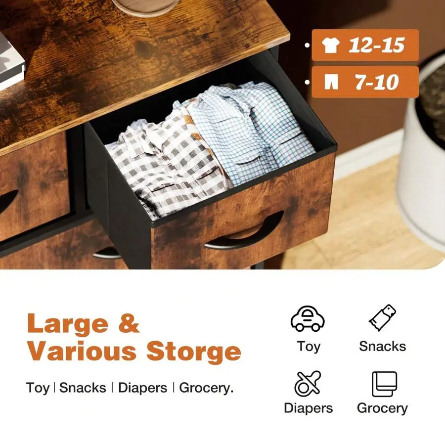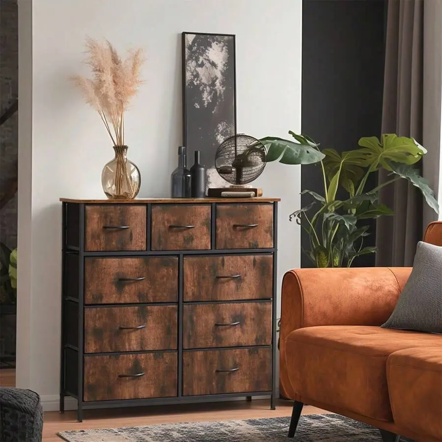 ✅Multifunctional for Every Space: Designed as a vertical storage tower, this 9-drawer dresser slides effortlessly into any corner-bedrooms, kids’ playrooms, entryways, closets, or dorms.Its neutral rust brown tone blends seamlessly with any decor, and it works as a TV cabinet, toy storage, dresser, bedside cabinet, wardrobe, or shoe cabinet-maximizing space in every room.
