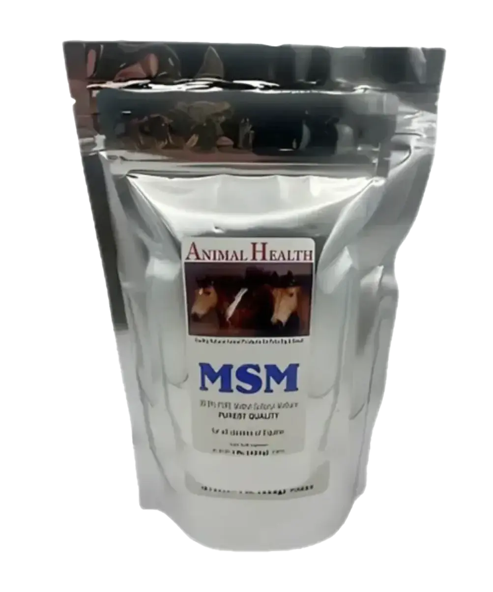 Boost your horse's joint health with our wholesale 20 lb pouch of MSM. Formulated specifically for equine use, this supplement supports mobility and overall well-being.