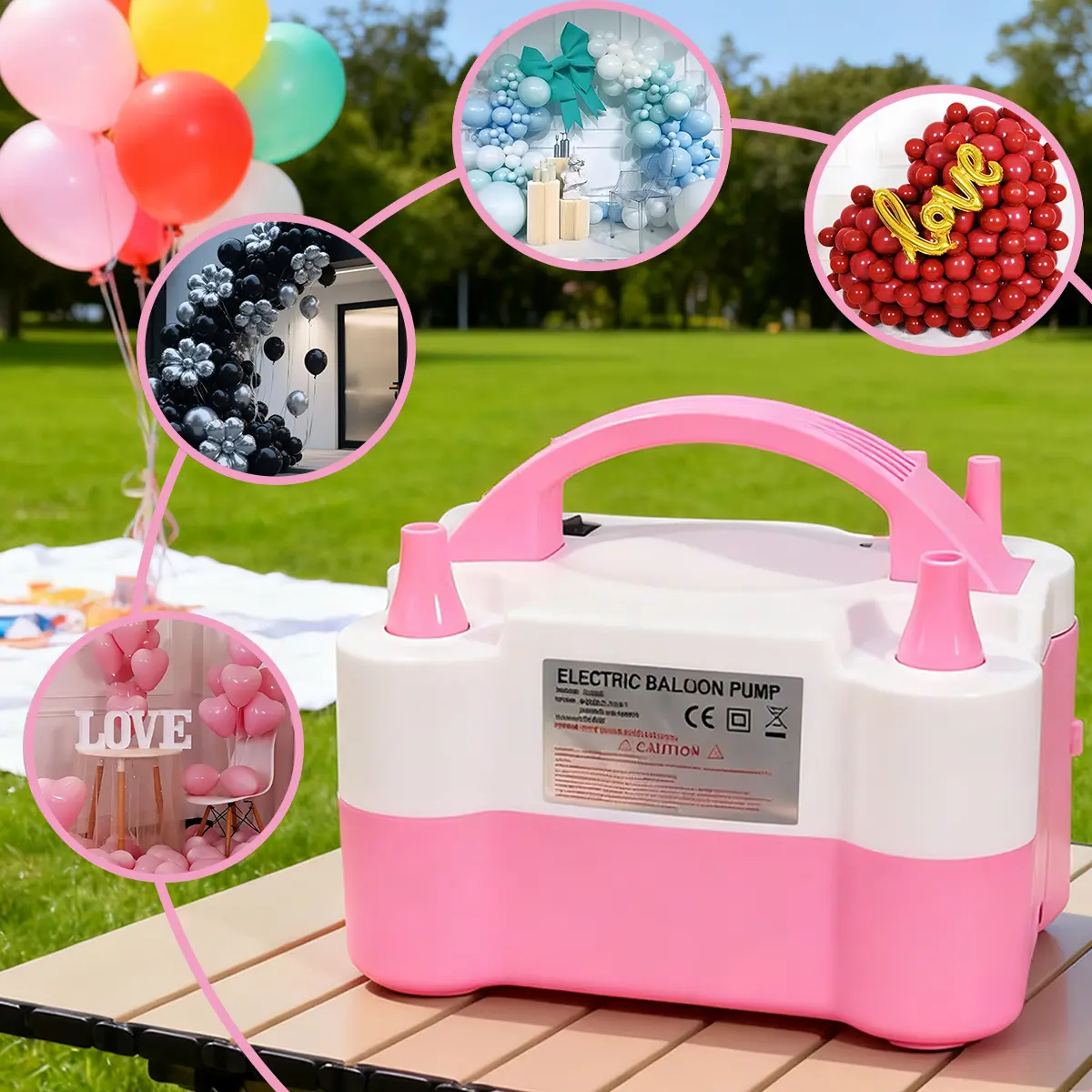 Plug and play, 3-second fast charging, operation, multi-specification adaptation.Easily handle party and celebration balloon arrangements, say goodbye to the hassle and fatigue of manual inflation!