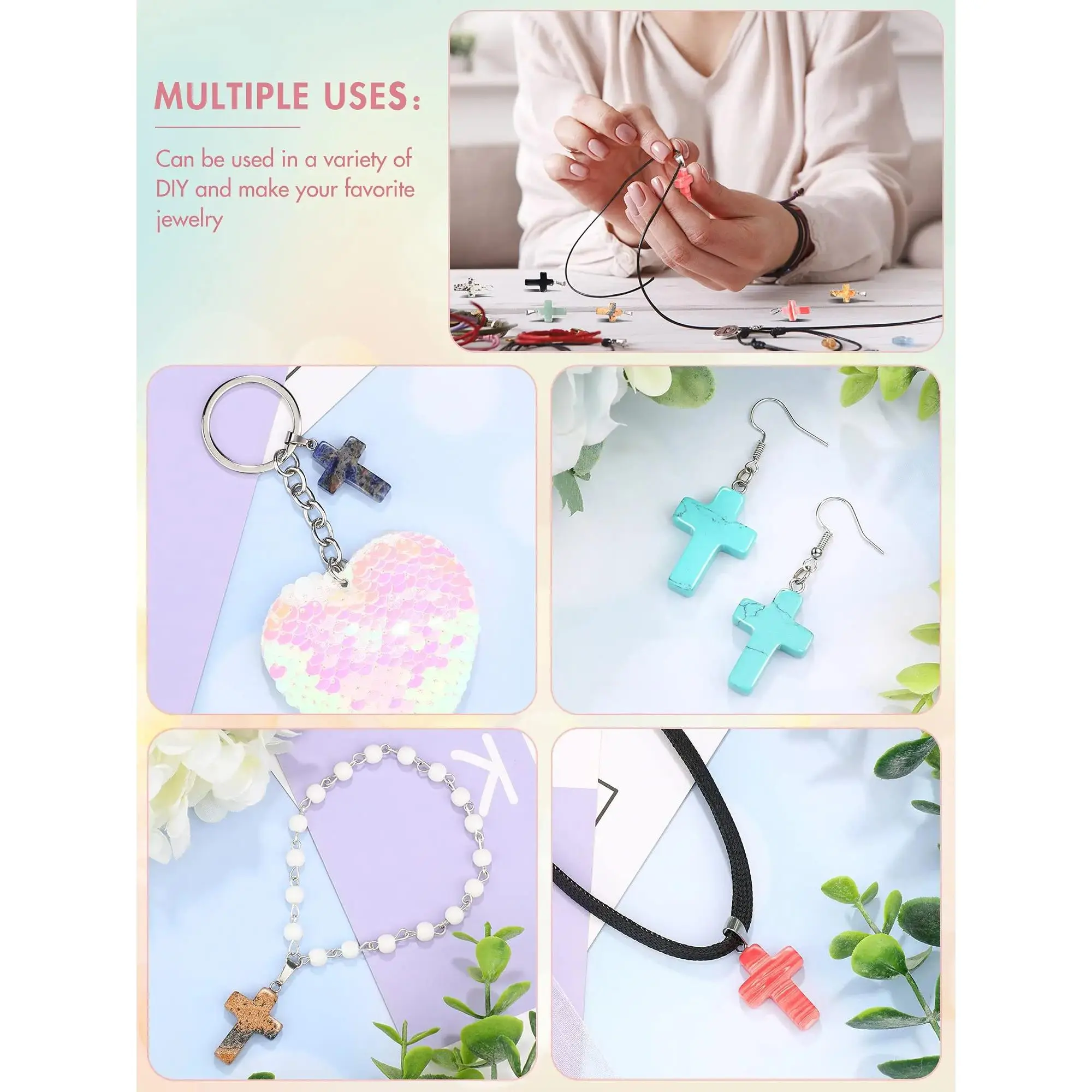 You will receive 50/75 cross-shaped crystals for jewelry making, with approximately 20-24 different colors, or a sufficient quantity and variety of cross crystal pendants to meet your various needs.Due to the instability of transportation, the product may be slightly damaged, even though we have used bubble bags to package the product.If you have any issues with your package, please feel free to contact our customer service!We will definitely resolve the issue for you.