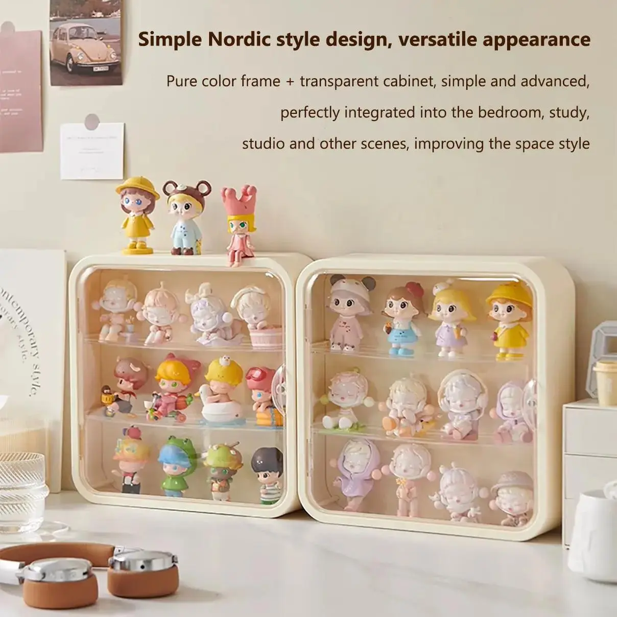 Adopt strong magnetic adsorption door panel, which can be opened and closed with a light pull, making it more convenient to take blind box figures and avoid frequent opening and closing to damage the cabinet.