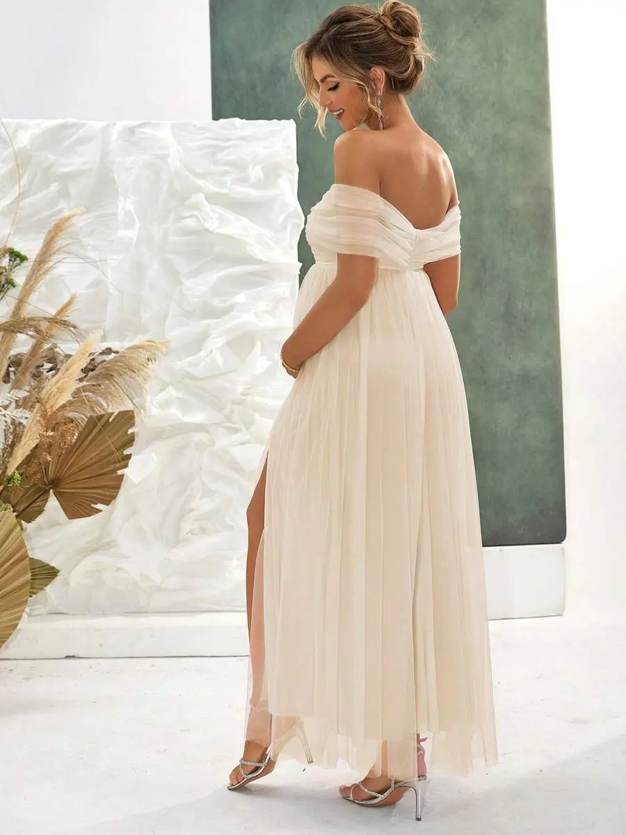 TAMALLA Off-Shoulder Mesh Sexy Maternity Dress Spring