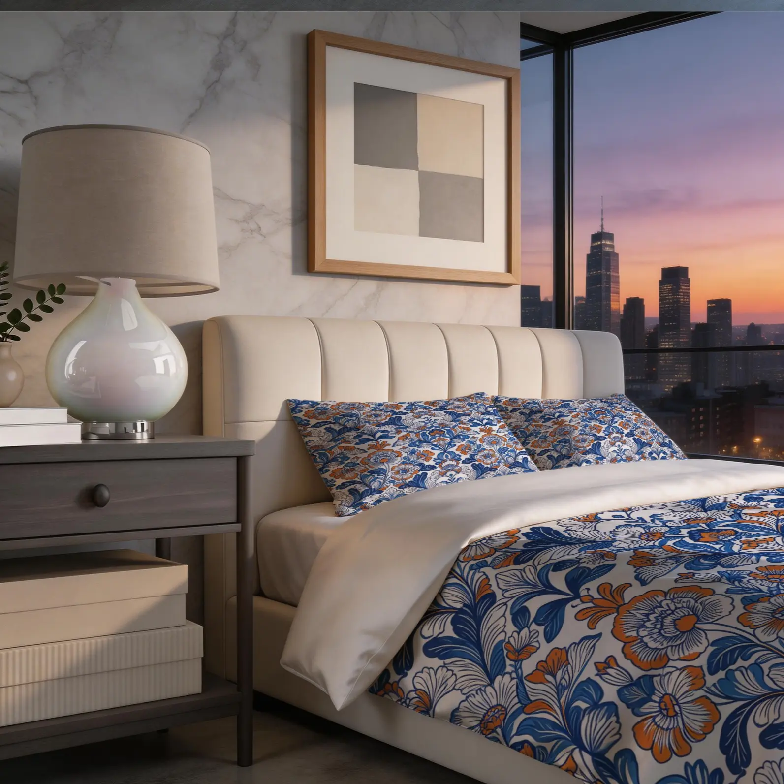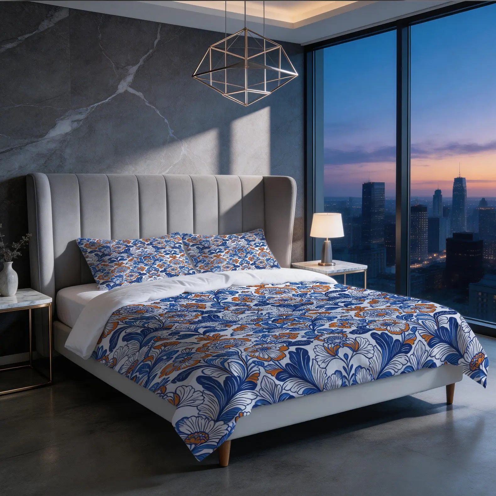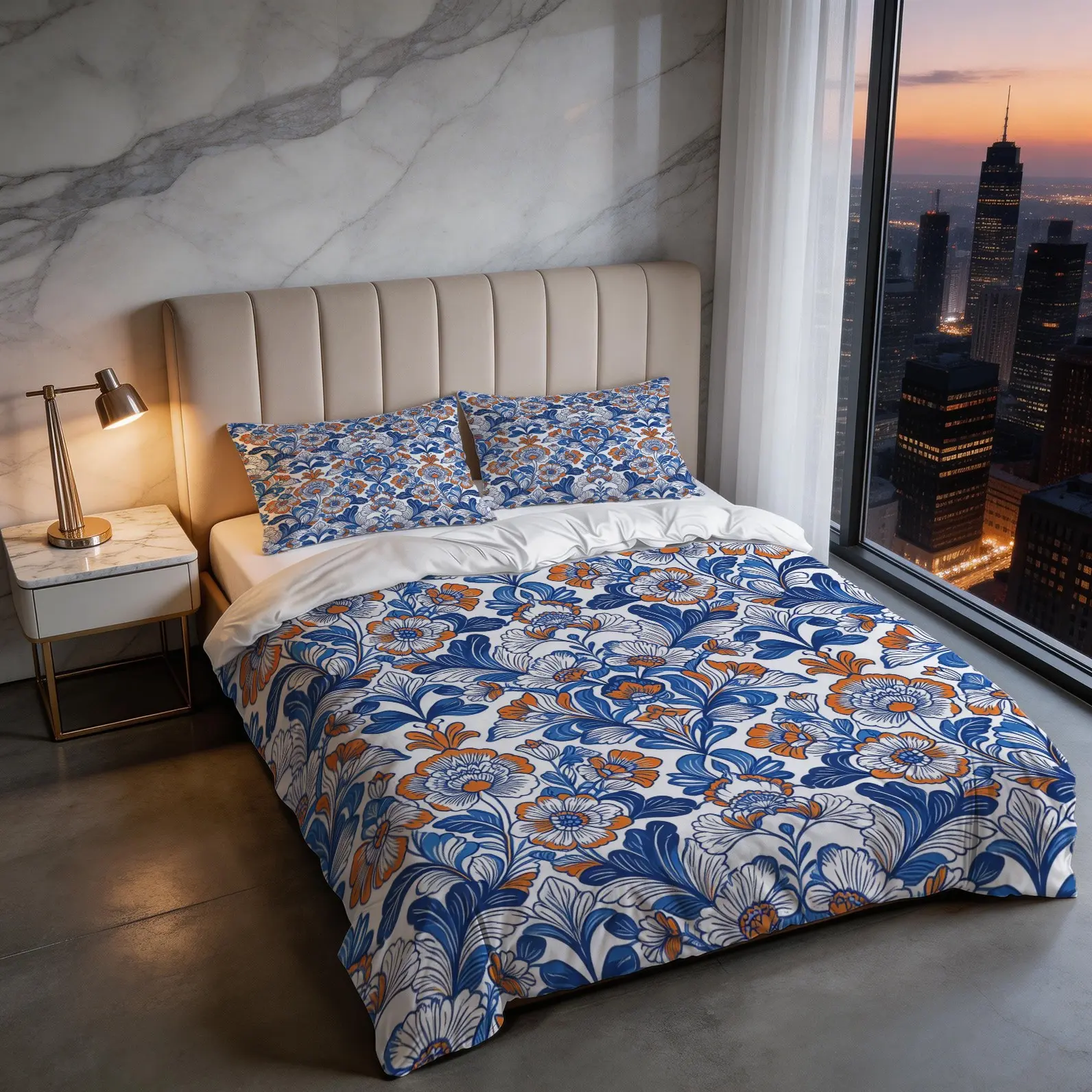 【Bohemian Aesthetic】: Features a vibrant blue and orange floral pattern, adding a unique touch to your bedroom decor.