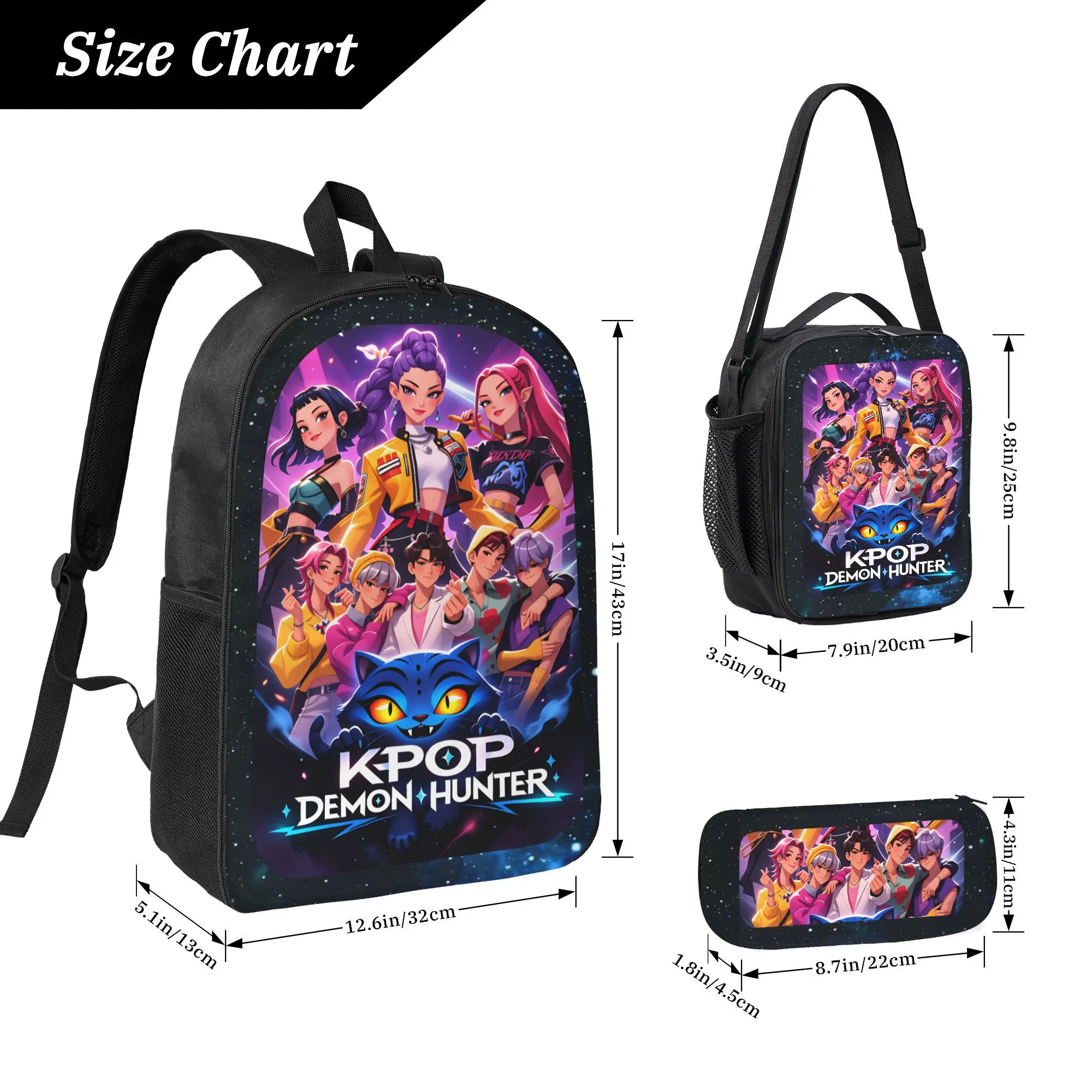 ·【Dimension】 Backpack,12.5''L X 5.5'W X 17''H ,Lunch Bag,7.9''L X 3.0''W X 9.4''H . Pencil Bag,9.0''L X 2.7''W X 4.3''H .