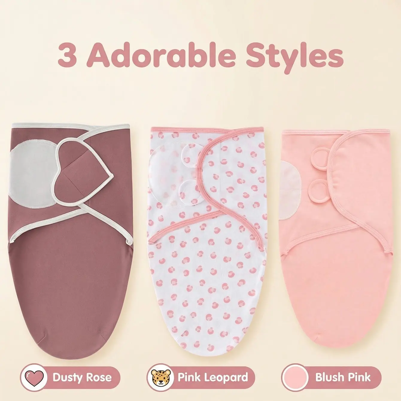 【Three-Piece Set】: Includes three adorable styles (Dusty Rose, Pink Leopard, Blush Pink) for variety and choice.