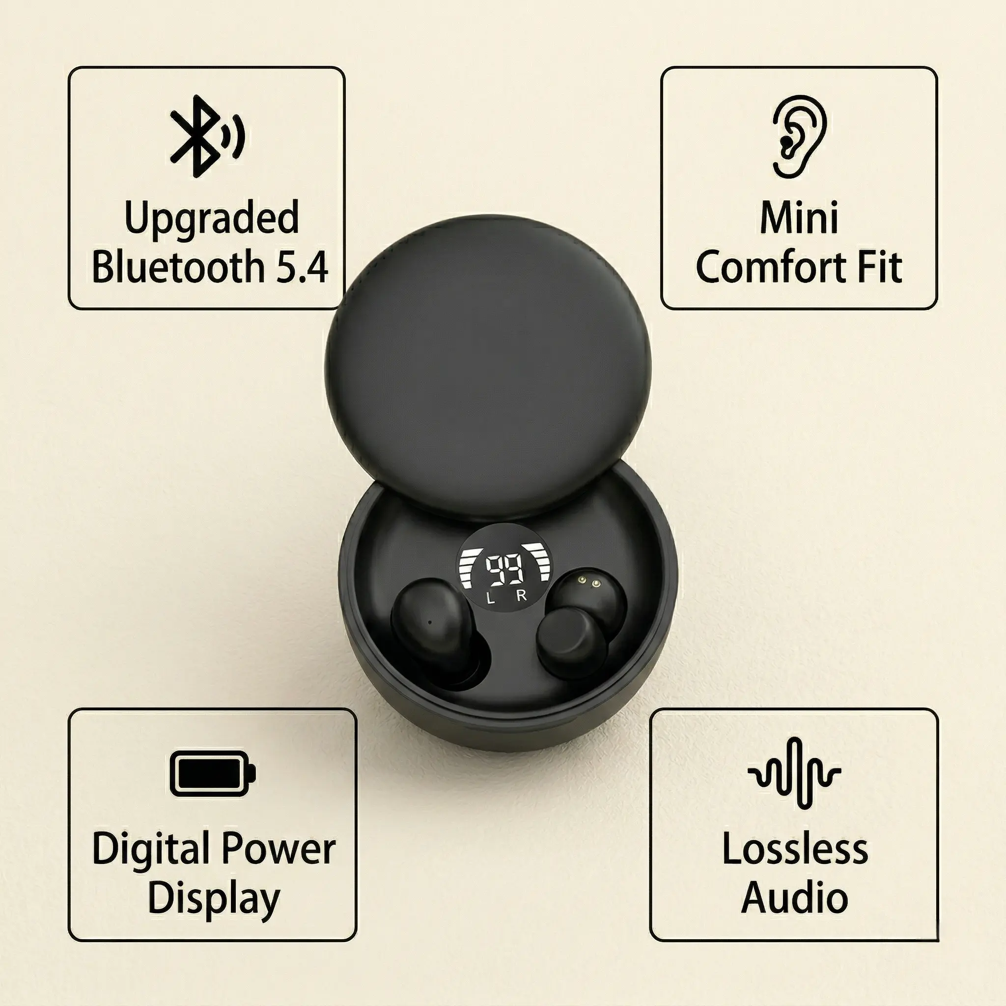 Smart LED Display: Charging case features a built-in digital screen. Say goodbye to battery anxiety.