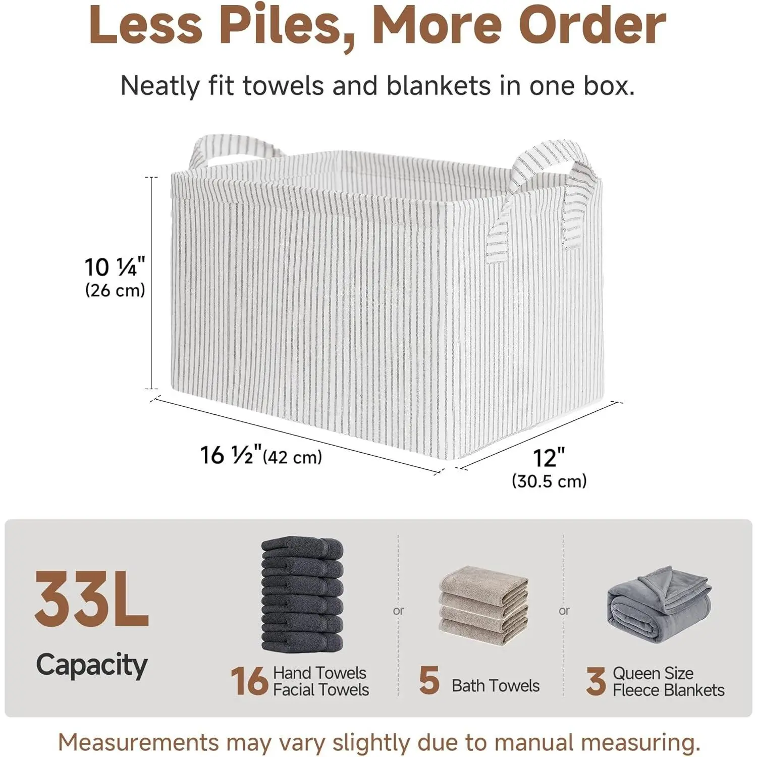 Versatile Use: Ideal for use in the bedroom, closet, living room, laundry room, or dorm. The neutral khaki and beige striped design blends effortlessly with any home décor, adding both function and style.