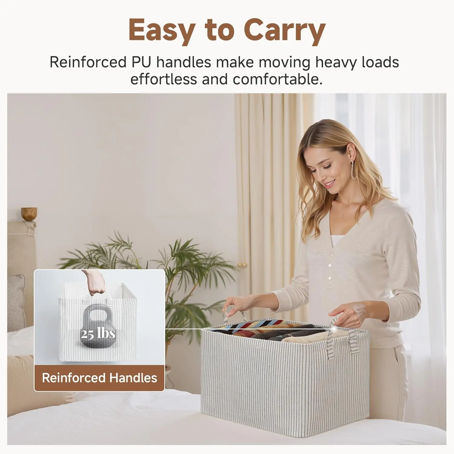 Durable PU Handles: Designed with two riveted PU leather handles for comfortable and secure carrying. Easily transport your storage bins without worrying about tearing or fraying.