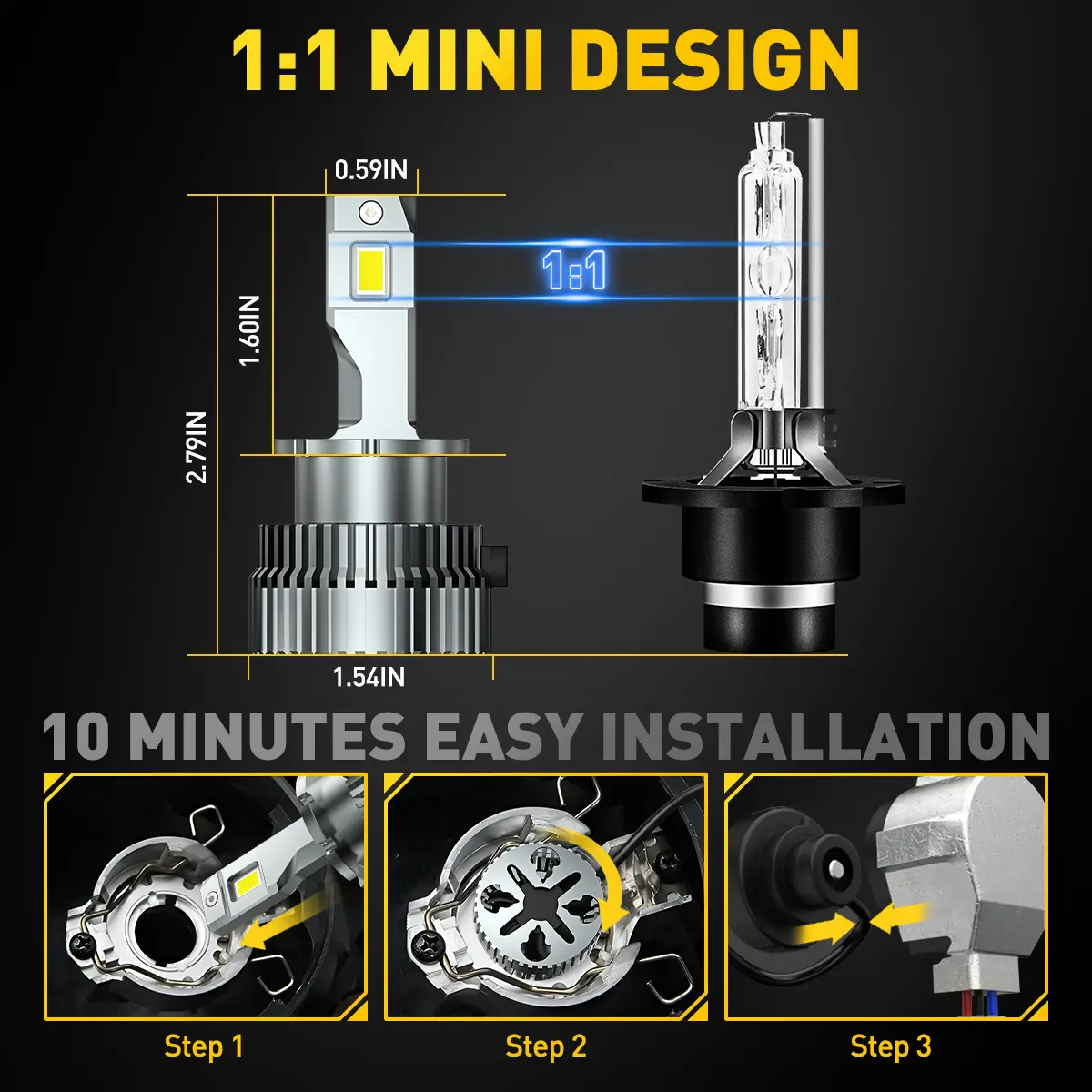 Plug and Play, 5 minutes installation, Polarity free: Same design as halogen, easy to install without any modification.