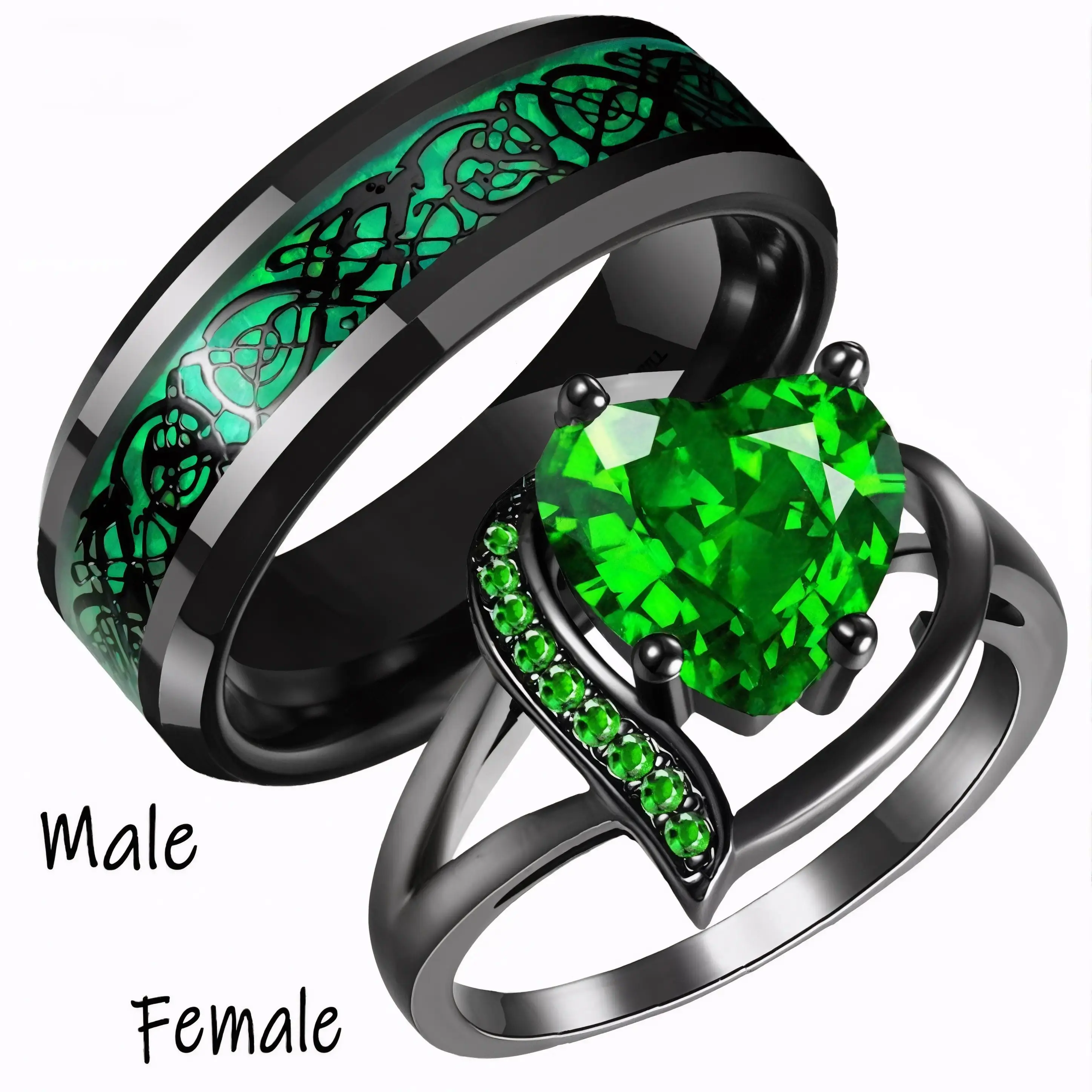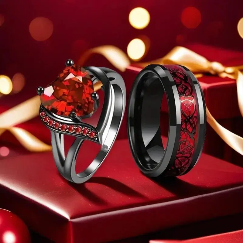 Romantic Couples Promise Rings Romantic Theme These engagement rings embody a romantic theme, perfect for anniversaries, engagements, or celebrating milestones. The rings feature a striking contrast between sleek black and polished white bands, creating a timeless yin-yang aesthetic. Specifications Women size: 6-11 Men size: 7-12 Weight: 20g Synthetic Zircon: Adds elegance in purple, red, green, or blue. Features Striking Contrast: Sleek black and polished white bands. Edgy Yet Meaningful: A unique gift for special occasions. Dragon Design: Men's ring features a dragon design, adding a unique touch. Ideal for Romantic gift perfect for anniversaries, engagements, or celebrating milestones. Material Hypoallergenic: Safe for sensitive skin. Scratch-Resistant: Durable for everyday wear. These engagement rings are a timeless and meaningful gift, perfect for special occasions.