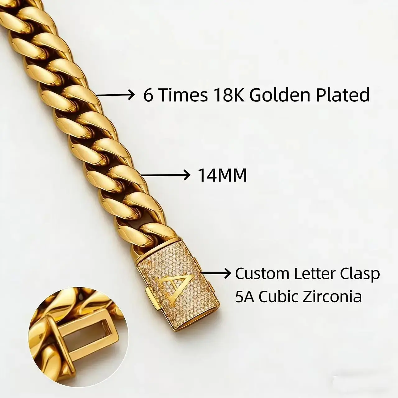 14mm Gold Miami Cuban Link Initial Bracelet – Custom A–Z Letter 18K Real Gold Plated Stainless Steel Solid Bracelet Waterproof & Scratch-Resistant Comes Perfect Gift for Boyfriend or Girlfriend